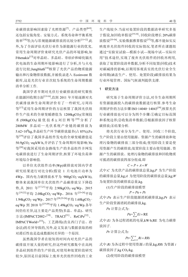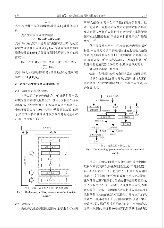 本研究建立了光伏行业生命周期碳排放清单,并在处置阶段对不同处置情景的碳排放进行比较.通过现场、资料调研和工艺研发应用的方式,获得光伏行业生产、使用、处置阶段及三个情景的资源、能源的输入/输出和污染物排放数据.