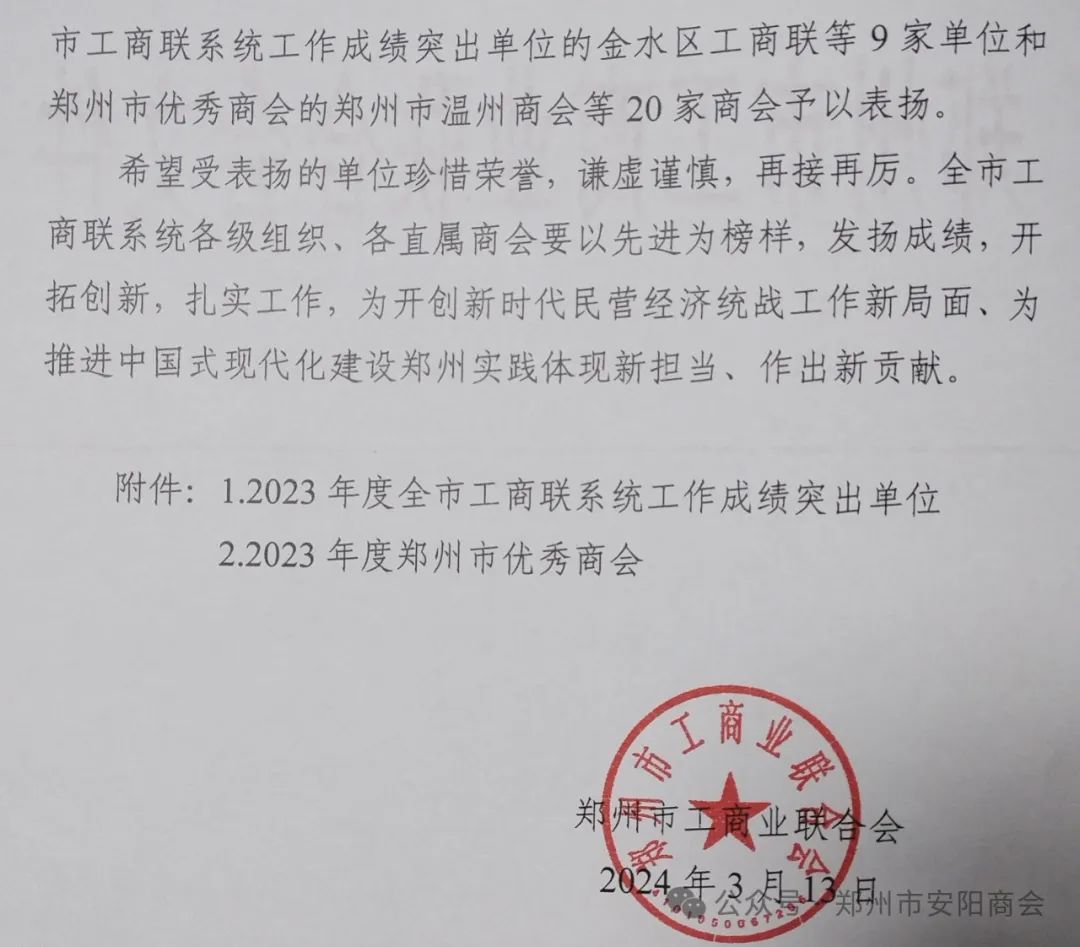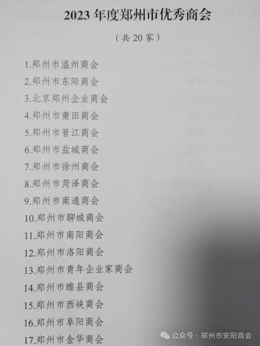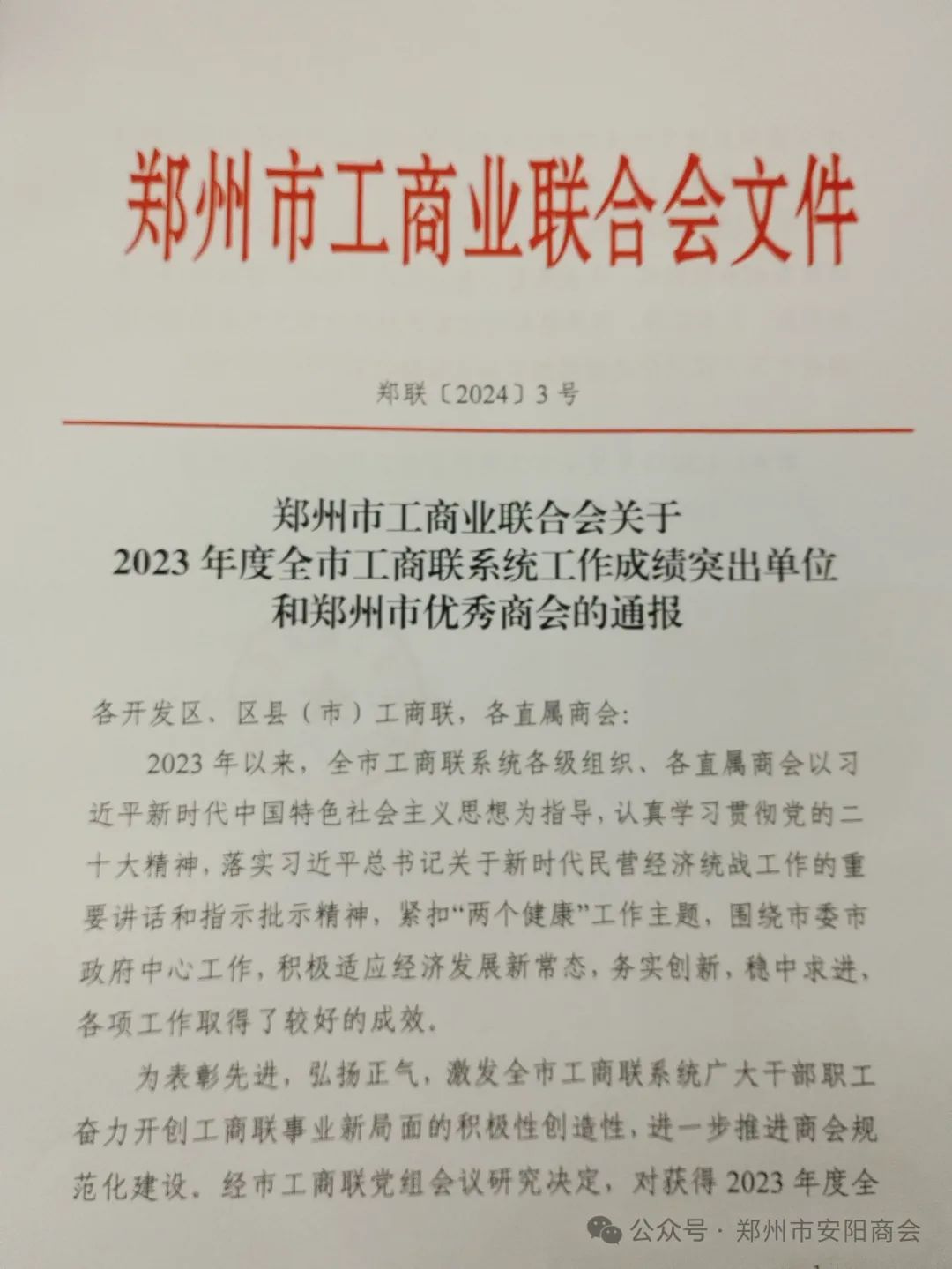【喜报】郑州市安阳商会荣获郑州市优秀商会