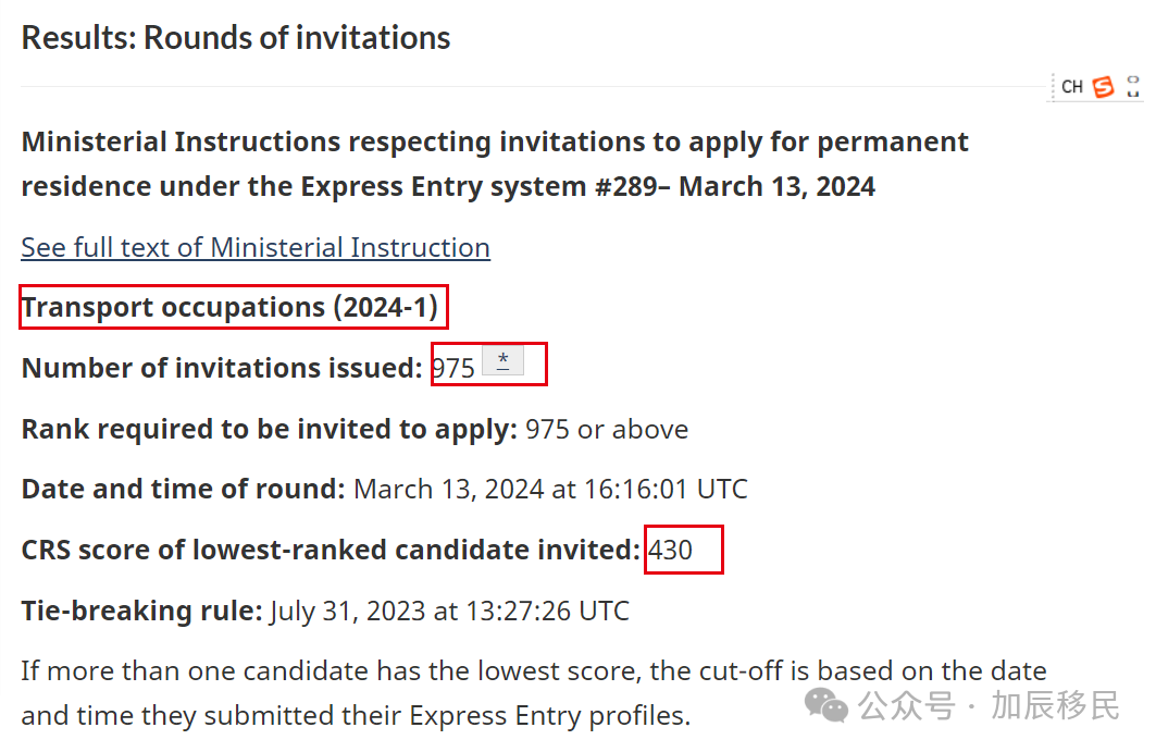 3月13号EE 快速通道又一次邀请运输行业候选人, 分数为430分有975人被邀请。