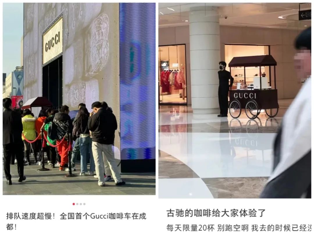 安可拉红的咖啡车给Gucci带去一波流量,不少网友甚至特意赶到现场打卡留念,但也遭到网友吐槽,需要排很久的队才能领一杯咖啡,且因限量供应,有特意到场的网友称自己跑空,没喝上一杯Gucci咖啡。此外还有网友吐槽,Gucci咖啡不如预想的好喝,“也就杯子好看而已”,让慕名而来的消费者对此感到失望。