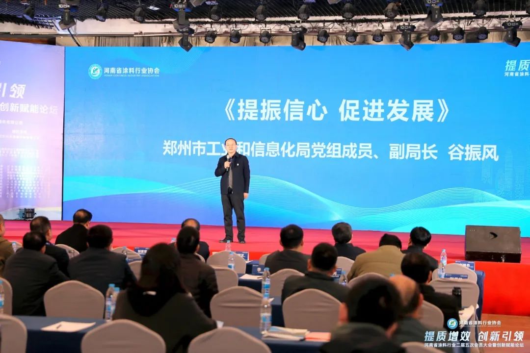 大会开始,河南省涂料行业协会会长谢伟首先致欢迎词。随后,中国涂料工业协会会长刘普军、河南省工业化信息厅化工处处长刘国正、河南省石油和化工协会常务副会长苏东分别致辞。郑州市工业和信息化局党组成员、副局长谷振风做《提振信心,促进发展》主题分享。