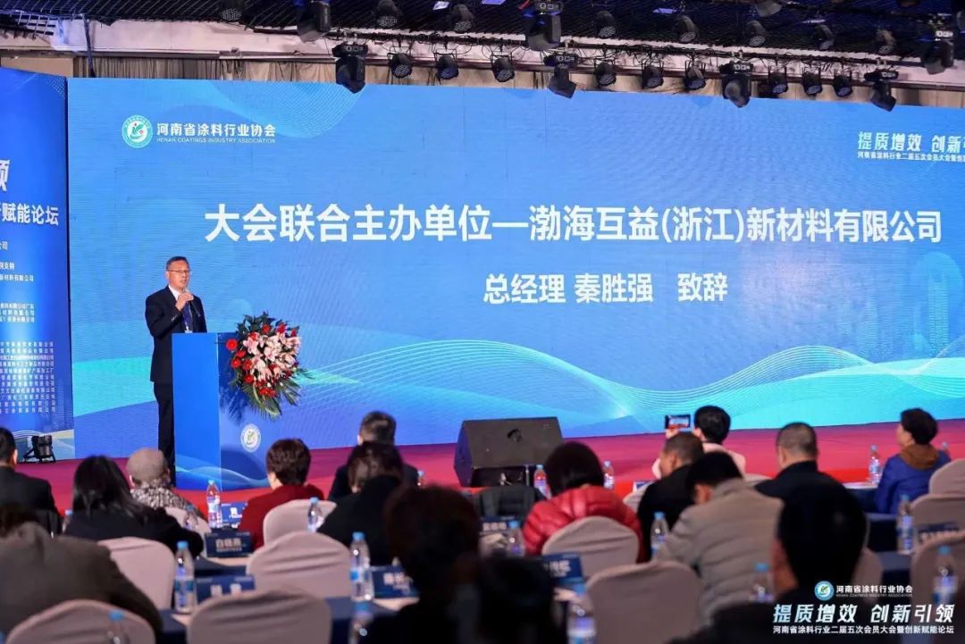 互益化工总经理秦胜强致辞发言,感谢了主办方对企业的厚爱和支持,他表示:“当前,涂料产业发展正处在转型升级的关键时期,召开本次大会,恰逢其时,意义重大。”