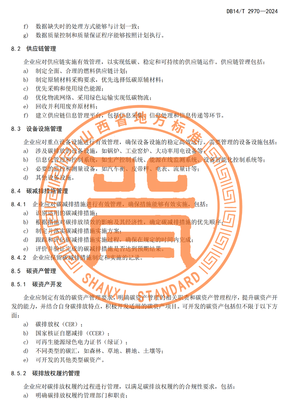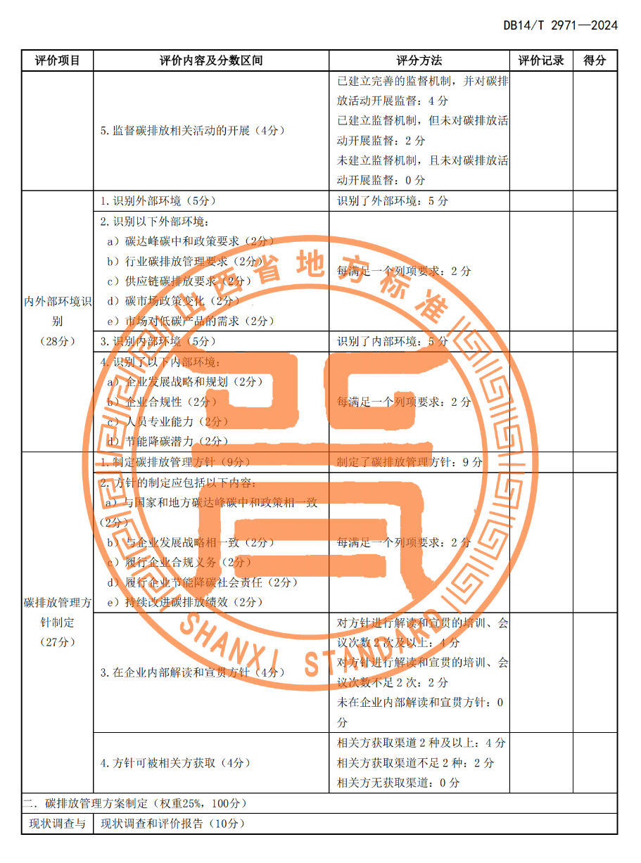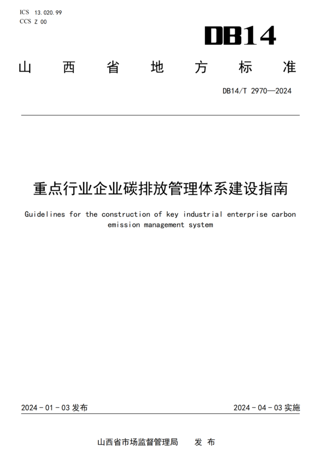 日前,山西发布了《重点行业企业碳排放管理体系建设指南》《重点行业企业碳排放管理体系评价通则》两个地方标准,填补了企业碳排放管理体系建设及评价标准空白。这两个标准将于2024年4月3日正式实施。为贯彻落实生态环境部《关于统筹和加强应对气候变化与生态环境保护相关工作的指导意见》,进一步建立和完善应对气候变化标准体系,为企业碳排放管理提供参考,客观评价重点行业企业碳排放管理体系建设效果,省生态环境厅结合山西省重点行业企业碳排放管理实际,研究制定了《重点行业企业碳排放管理体系建设指南》(以下简称《建设指南》)、《重点行业企业碳排放管理体系评价通则》(以下简称《评价通则》)。《建设指南》提供了重点行业企业碳排放管理体系建设的指南,包括管理机构建立、碳排放管理方针制定、碳排放管理方案制定、资源配置与支撑机制建设、实施过程管理、评价与审核、改进。本文件适用于电力、化工、钢铁、水泥、有色金属、焦化和煤炭等重点行业企业碳排放管理体系的建设,其他行业企业可参照执行。《评价通则》规定了重点行业企业碳排放管理体系评价的原则和依据、评价实施、评价方法和评价结果应用。本文件适用于依据《建设指南》建立并运行了碳排放管理体系的重点行业企业所开展的碳排放管理体系自我评价。据悉,两个标准的制定符合国家相关法律法规、政策及“双碳”战略要求,对于完善山西省绿色低碳标准体系,指导重点行业企业践行绿色低碳发展理念,建设内部碳排放管理体系,实现高质量发展具有重要促进作用。本文件提供了重点行业企业碳排放管理体系建设的指南,包括管理机构建立、碳排放管理方针制定、碳排放管理方案制定、资源配置与支撑机制建设、实施过程管理、评价与审核、改进。本文件适用于电力、化工、钢铁、水泥、有色金属、焦化和煤炭等重点行业企业碳排放管理体系的建设,其他行业企业可参照执行。