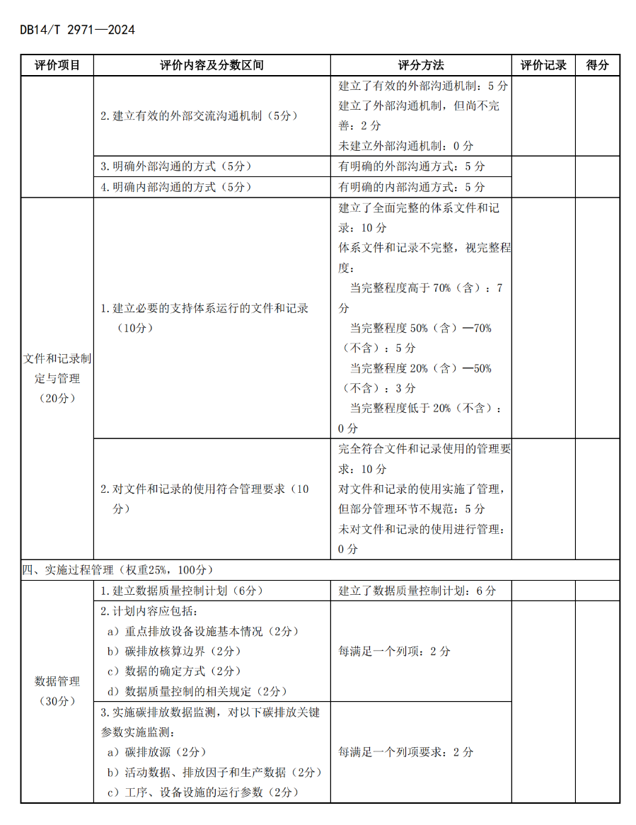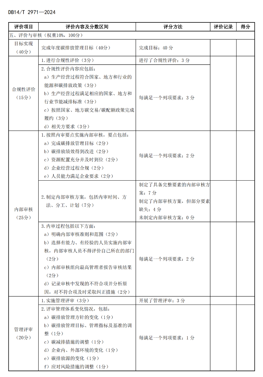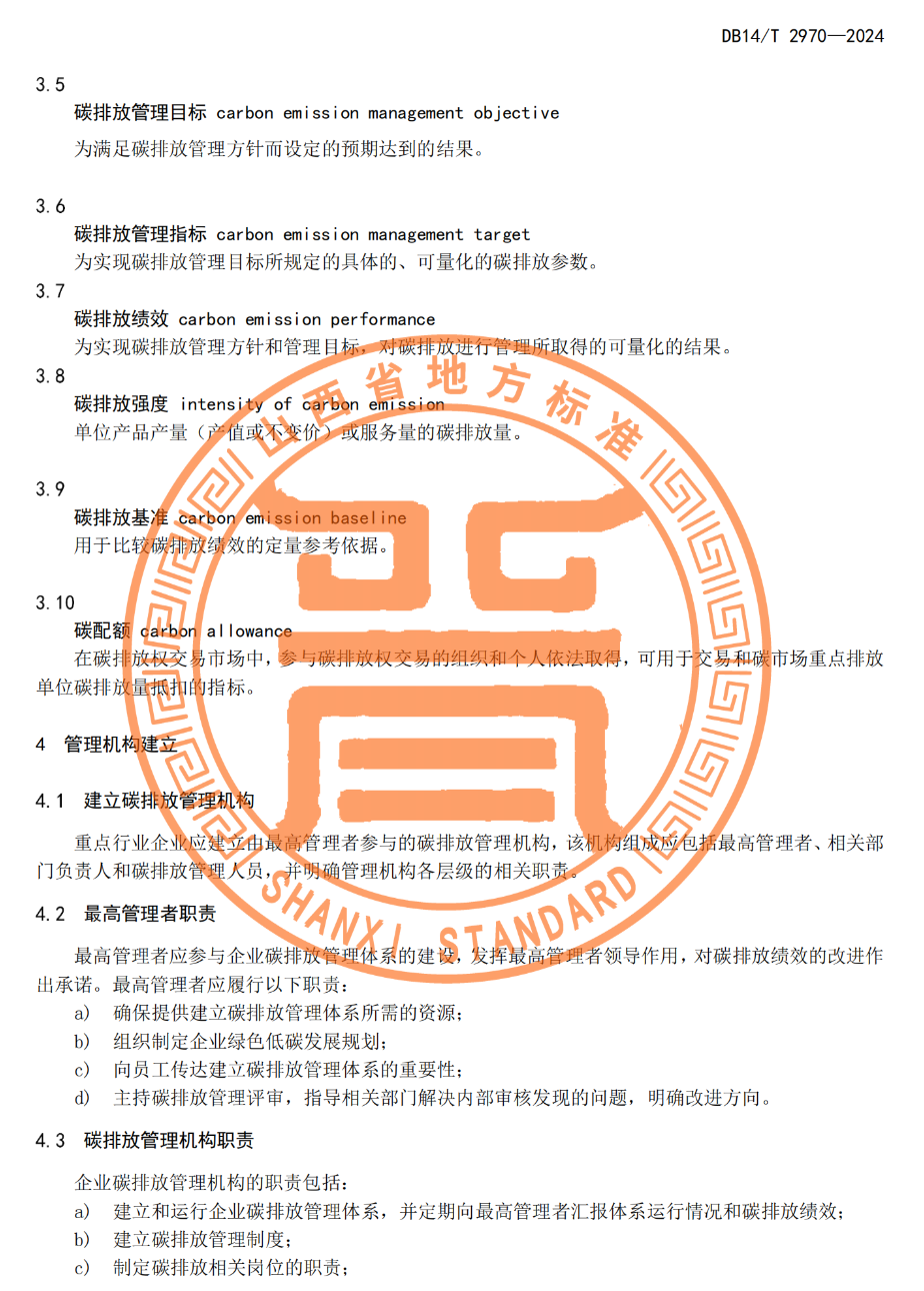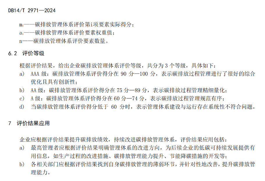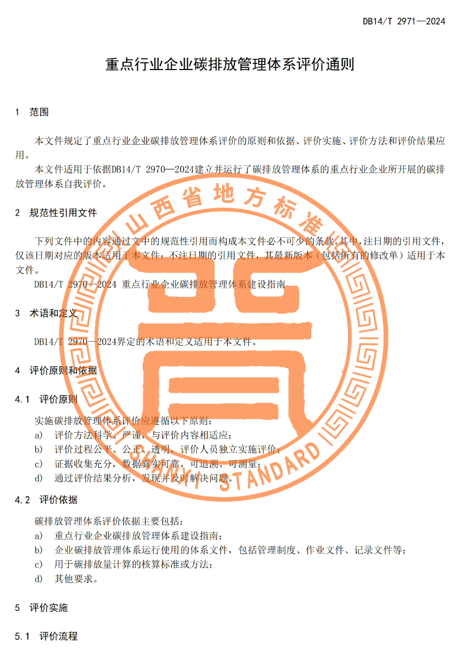 本文件规定了重点行业企业碳排放管理体系评价的原则和依据、评价实施、评价方法和评价结果应用。本文件适用于依据DB14/T 2970—2024建立并运行了碳排放管理体系的重点行业企业所开展的碳排放管理体系自我评价。