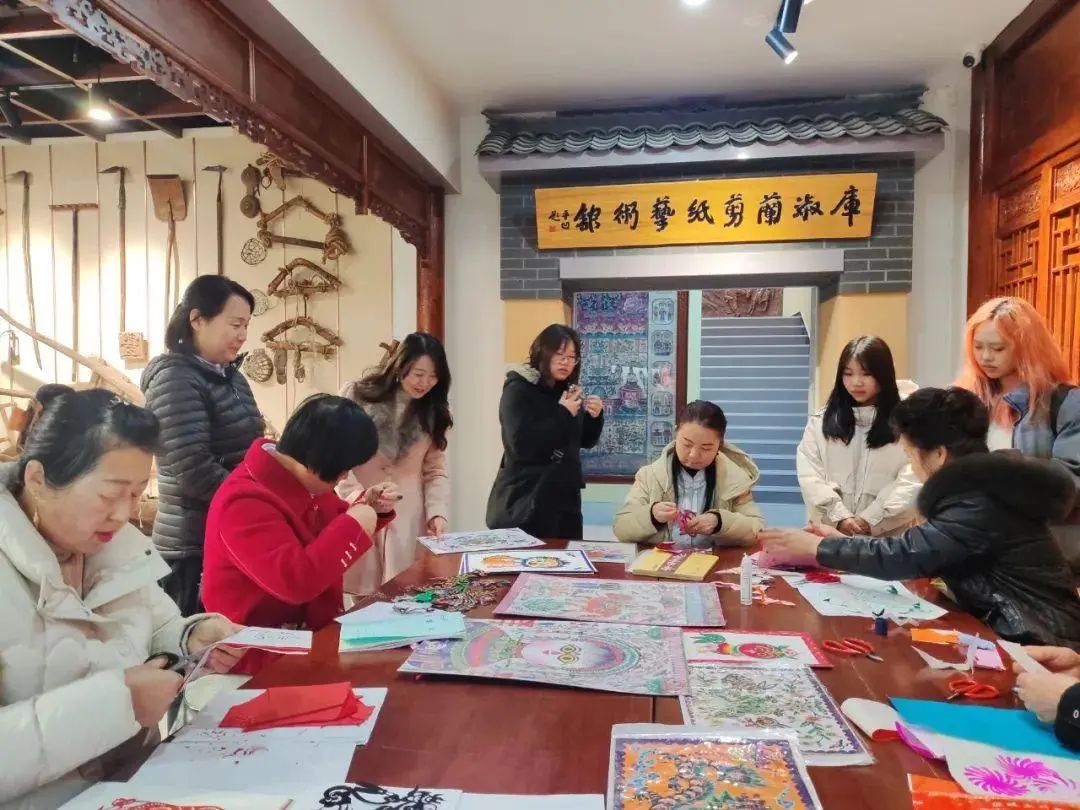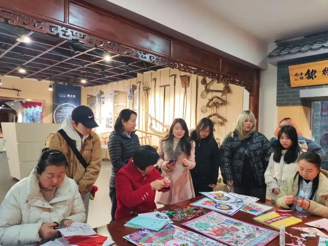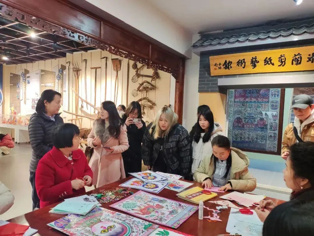 3月7日,陕西服装工程学院师生来旬参观旬邑县非物质文化遗产陈列馆,并与国家级项目旬邑彩贴剪纸国家级传承人何爱叶,市级传承人田小会、李玲、李伟珍,县级传承人郭亚丽现场互动,学习交流旬邑彩贴剪纸和单色剪纸艺术技艺。