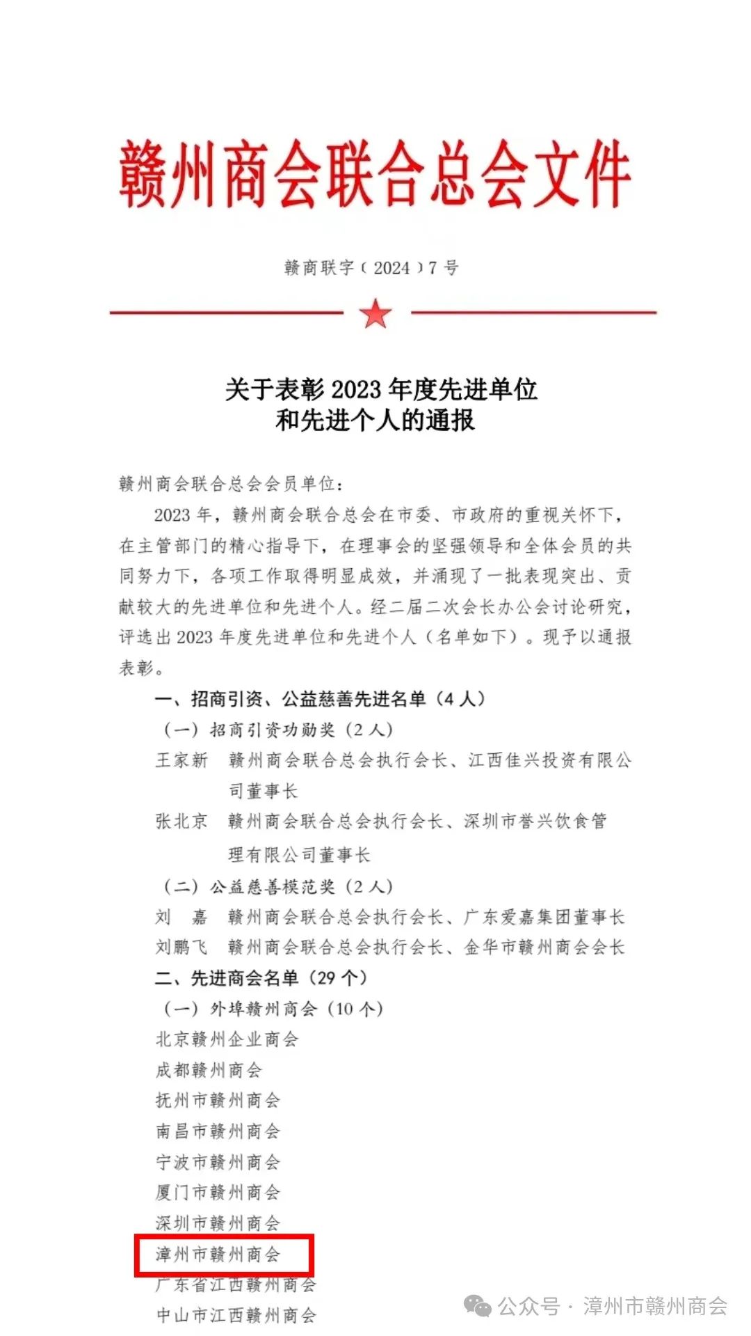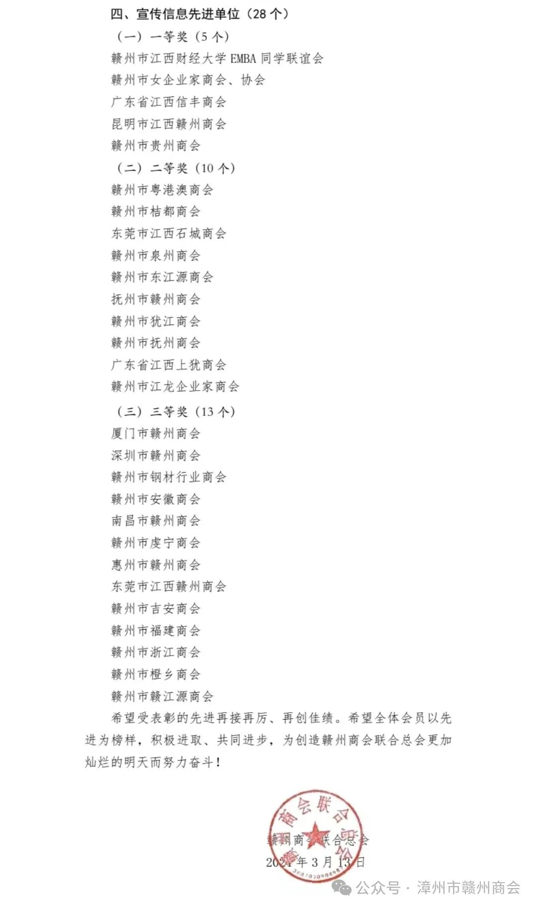 3月13日,赣州商会联合总会发出《关于表彰2023年度先进单位和先进个人的通报》,我会名列其中,受到通报表彰。