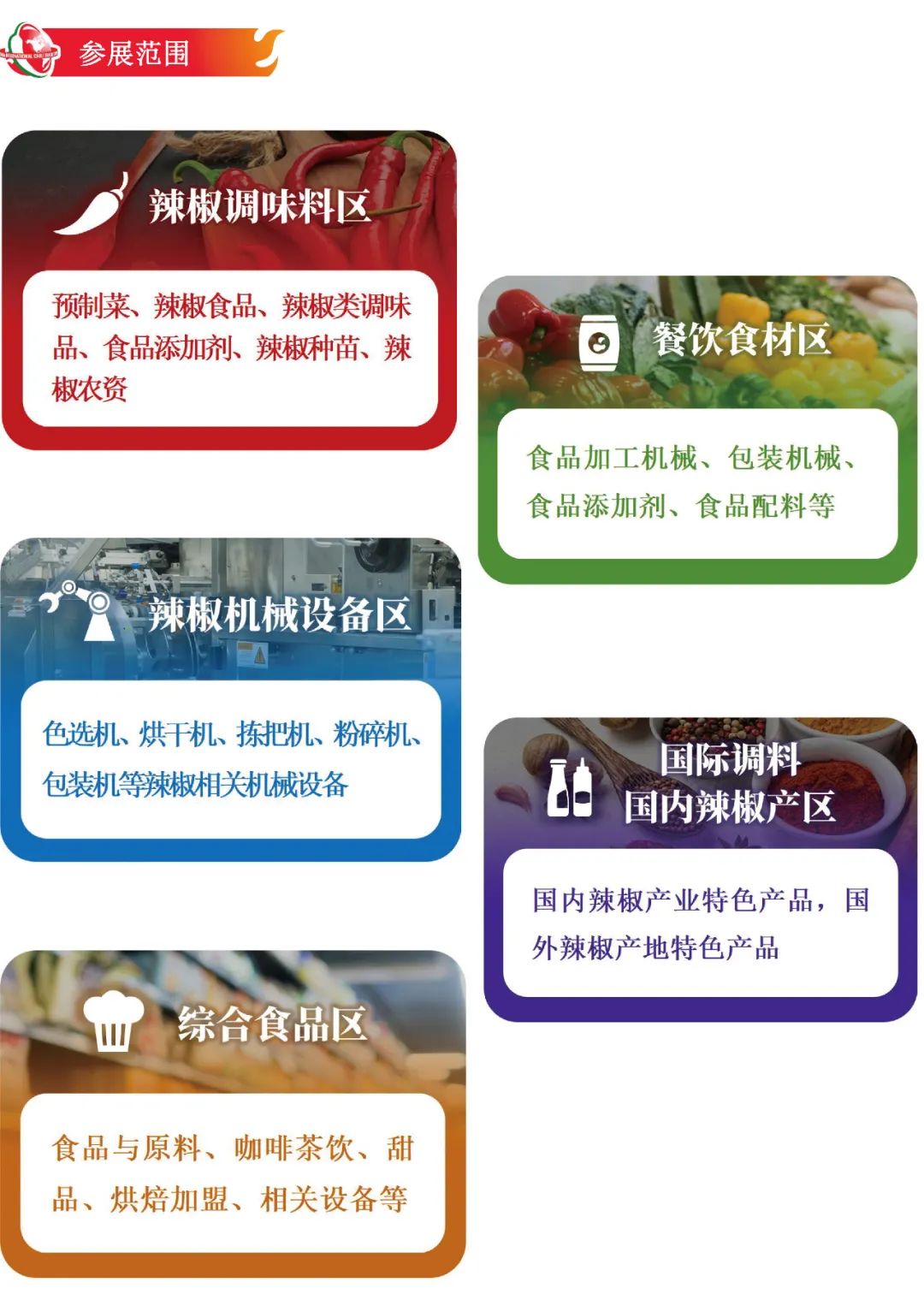 本届辣博会的展出规模及品质将再上台阶,是企业提高知名度,结识产区供应商,结识终端新客户和开拓新市场的最直接、最有效的渠道,想开发新客户,开拓新市场各位不要犹豫,抓紧时间报名参展。