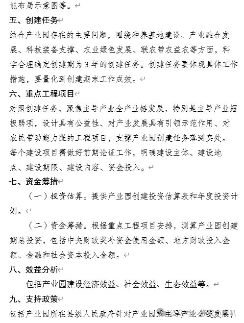 (二)强化工作统筹。各地要立足地区优势和资源禀赋,在明确发展主导产业的基础上,加强农业产业发展的统筹规划和整体布局,构建以产业强镇为基础、产业园为引擎、产业集群为骨干,点线面协同推进的现代乡村产业体系。同时,要加强资金统筹安排,加强中央财政资金引导作用,带动地方政府加大投入,引导和撬动金融资本和社会资本参与建设,促进市场投资主体和农民合理分享增值收益,提高产业发展的内在活力和竞争力。