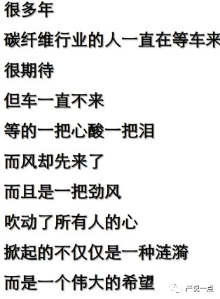 相反,最近几年碳纤维在风电叶片上的应用是异军突起,短短几年内,其用量就突破两万吨,并且超过航空航天的量,成为碳纤维应用最多的领域。记得以前为此写了首打油诗: