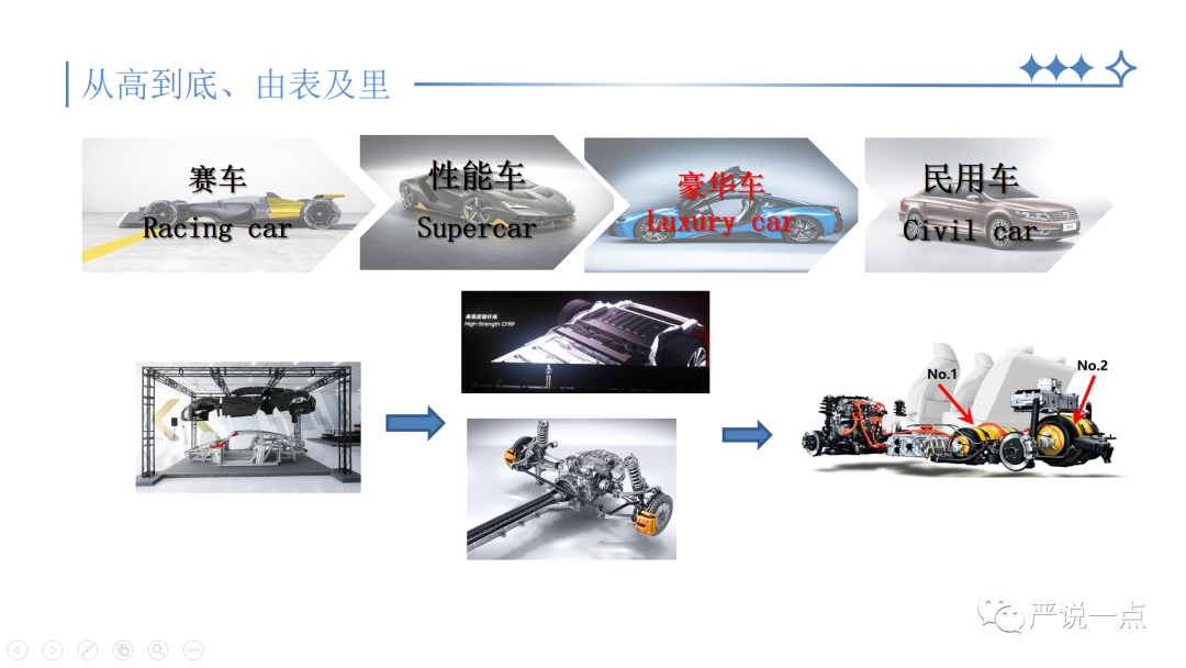 上表分析了碳纤维在风电和汽车领域应用区别,特别是当风电装备作为生产资料时轻量化的帐是可以算清楚的,而汽车就复杂多了。从碳纤维在汽车上应用的发展历史看,先从赛车到跑车和豪车,最近一些年向常规车型进行延伸。