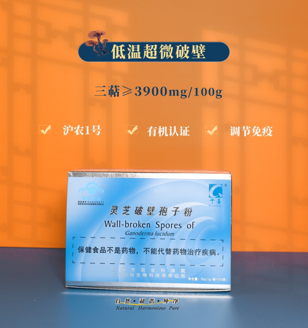 【功效成份及含量】每100g 含:多糖730mg 、三萜1000mg