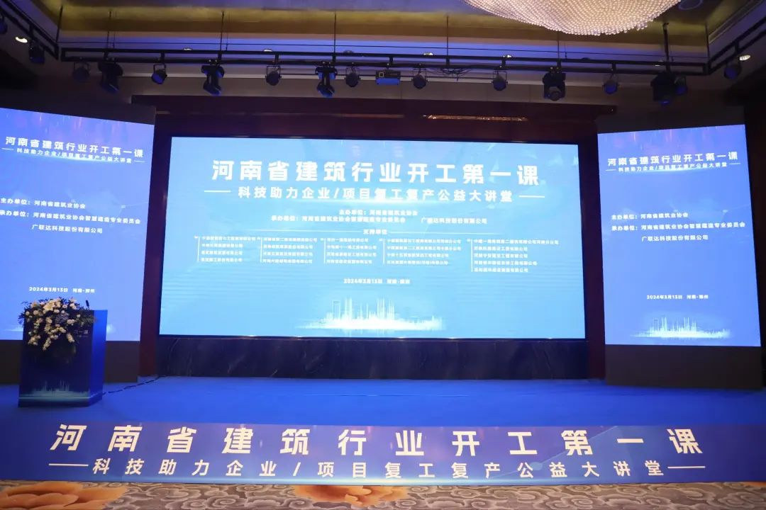 3月13日,由河南省建筑业协会主办,河南省建筑业协会智慧建造专业委员会、广联达科技股份有限公司承办的河南省建筑行业开工第一课——科技助力企业/项目复工复产公益大讲堂在郑州成功举办。河南省住房和城乡建设厅副厅长张瑛出席会议并讲话,河南省建筑业协会会长王国清出席会议并致辞,会议特邀多名专家学者演讲授课。来自全省业界同仁共计600余人参加会议。河南省建筑业协会秘书长宁广现主持会议。