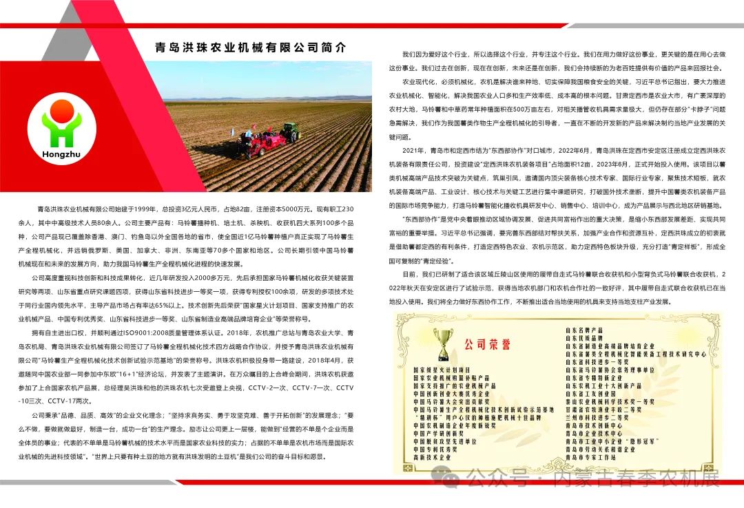 为积极贯彻落实党的二十大精神,全面落实《内蒙古自治区“十四五”推进农牧业农村牧区现代化发展规划》和《“十四五”全国农业机械化发展规划》的有关部署,坚持新发展理念,以生态优先、绿色发展为导向,促进农牧业机械高质量发展。2024年第十一届内蒙古(春季)农业机械博览会将于3月26日-28日在呼和浩特市·内蒙古国际会展中心召开。