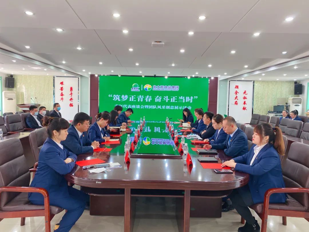 举办五四青年节“筑梦正青春 奋斗正当时”青年代表座谈会暨团队风采创意展示活动。旨在引领广大食品集团青年继承和发扬“五四精神”,践行“奋斗文化”,带动食品集团青年坚定理想信念,树立远大志向,提升个人综合素养,为集团发展贡献力量。