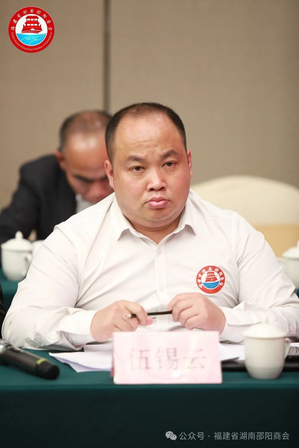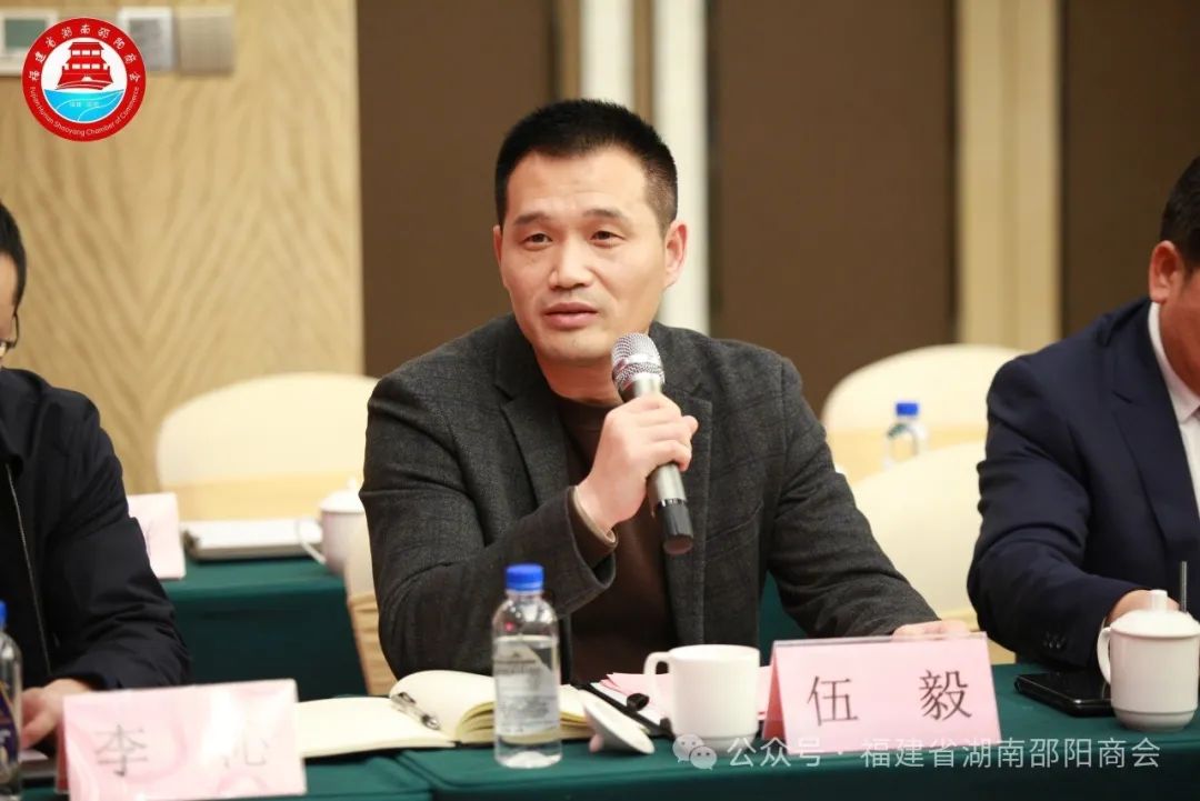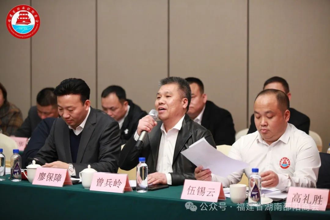 福建省湖南邵阳商会监事长伍锡云主持会议。