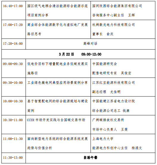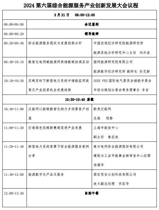 协办单位:国网上海综合能源服务有限公司、西安思安云创科技有限公司、新奥数能科技有限公司、福建永福电力设计股份有限公司支持单位:国网江苏省综合能源服务有限公司、国网山东综合能源服务有限公司、国网雄安综合能源服务有限公司、国网陕西综合能源集团有限公司、国网湖北综合能源服务有限公司、南方电网综合能源股份有限公司、上海市电力行业科学技术协会、中能建江苏省电力设计院、江苏省可再生能源行业协会、北极星招聘、北极星学社等赞助单位:晶澳智慧能源科技(海南)有限公司、平高综合能源服务有限公司、深圳市科华恒盛科技有限公司、深圳市中电电力技术股份有限公司、上海方融科技有限责任公司、浙江浙达能源科技有限公司、北京京东方能源科技有限公司、广东美的暖通设备有限公司、东方电子股份有限公司三、大会议程(以会议现场实际情况为准)