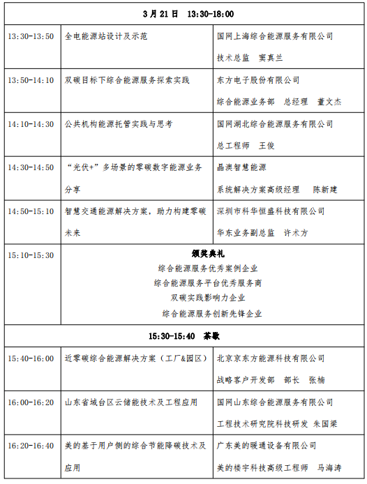 2.权威的综合能源服务政策及碳中和建设政策解读、综合能源项目开发建设案例展示、综合能源服务模式全生命周期剖析、综合能源服务落地实践案例分享、综合能源服务颁奖仪式;