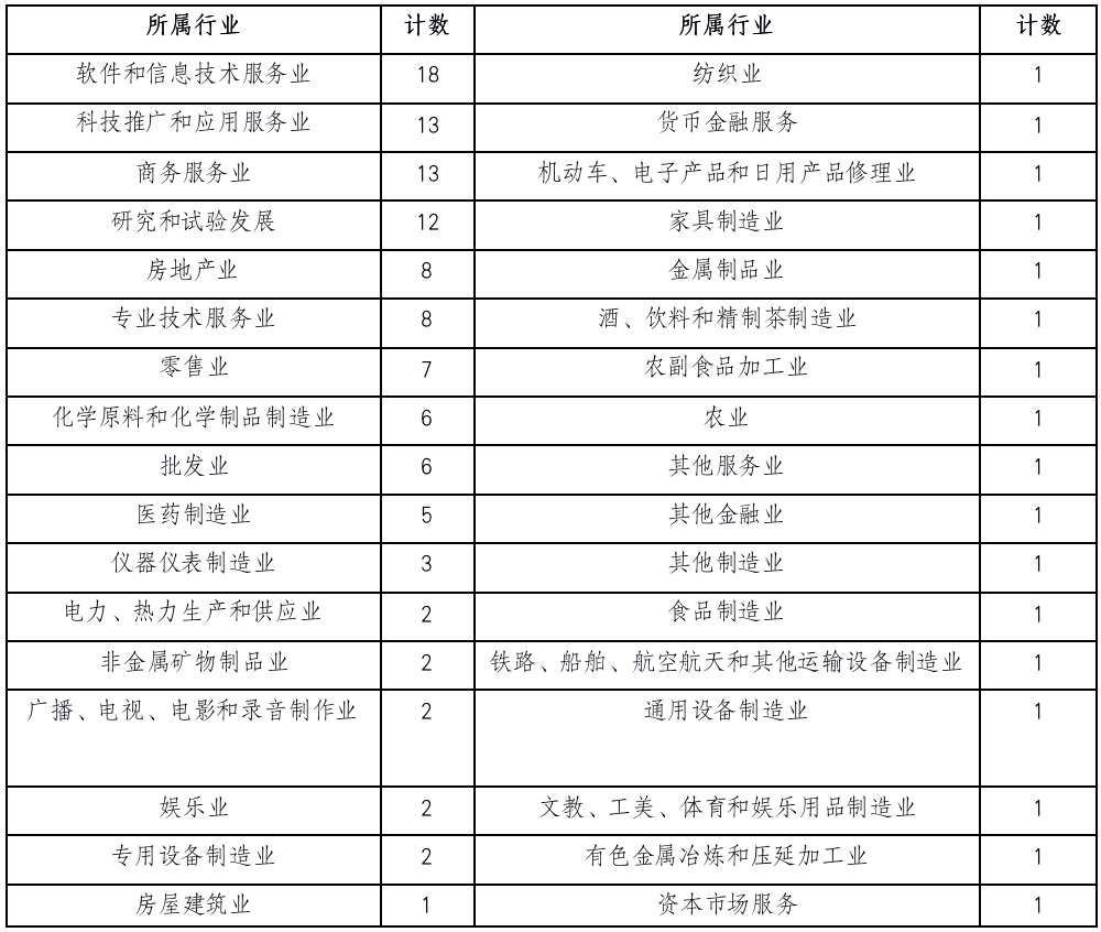 表 3在A股、中概股、港股、科创板上市的河北省企业所处行业分布