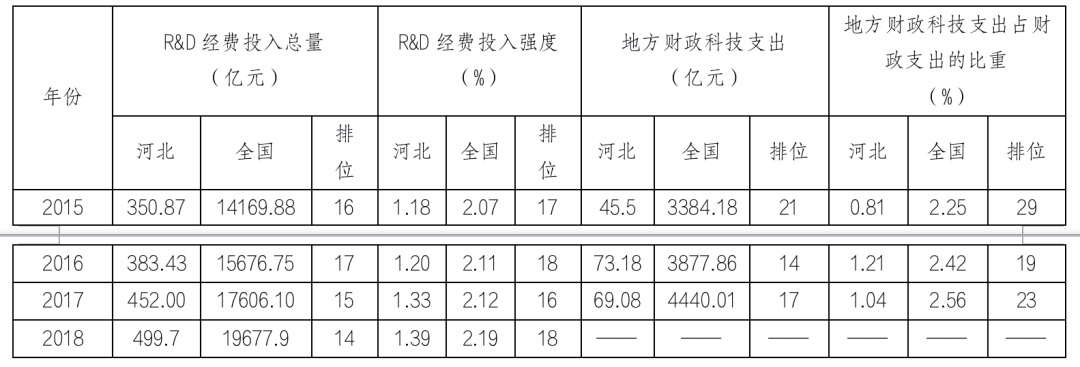 科技创新实力在全国排位落后,亟需加大优势领域要素集聚度。从要素投入来看,河北省科技创新投入虽然持续增长,但是研发投入和研发强度仍然有明显差距;国家重大科技基础设施、国家重点实验室、国家工程技术研究中心等科技研发平台建设在国内竞争力弱,未来产业所需人才缺口较大,高技术产品应用不足。