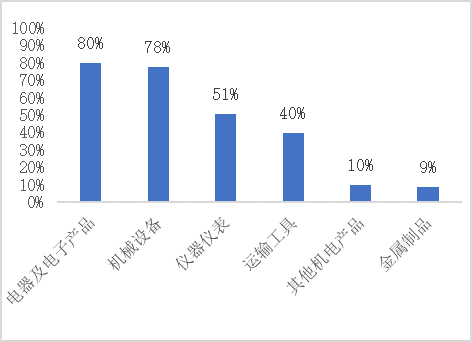 图 2 河北省机电产品进口总值占行业进出口贸易总额的比重