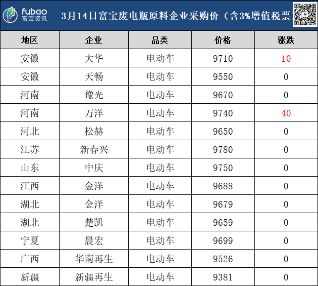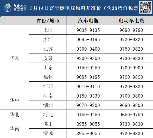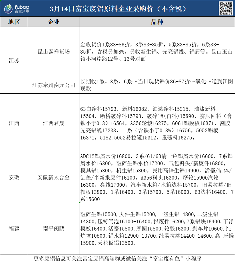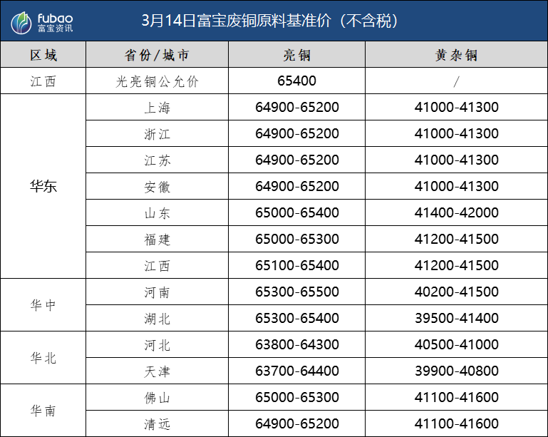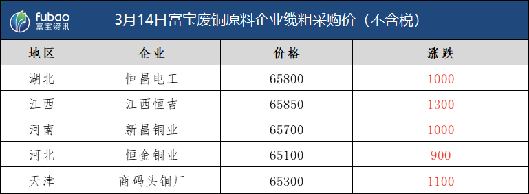 3月14日 富宝基准价、企业报价