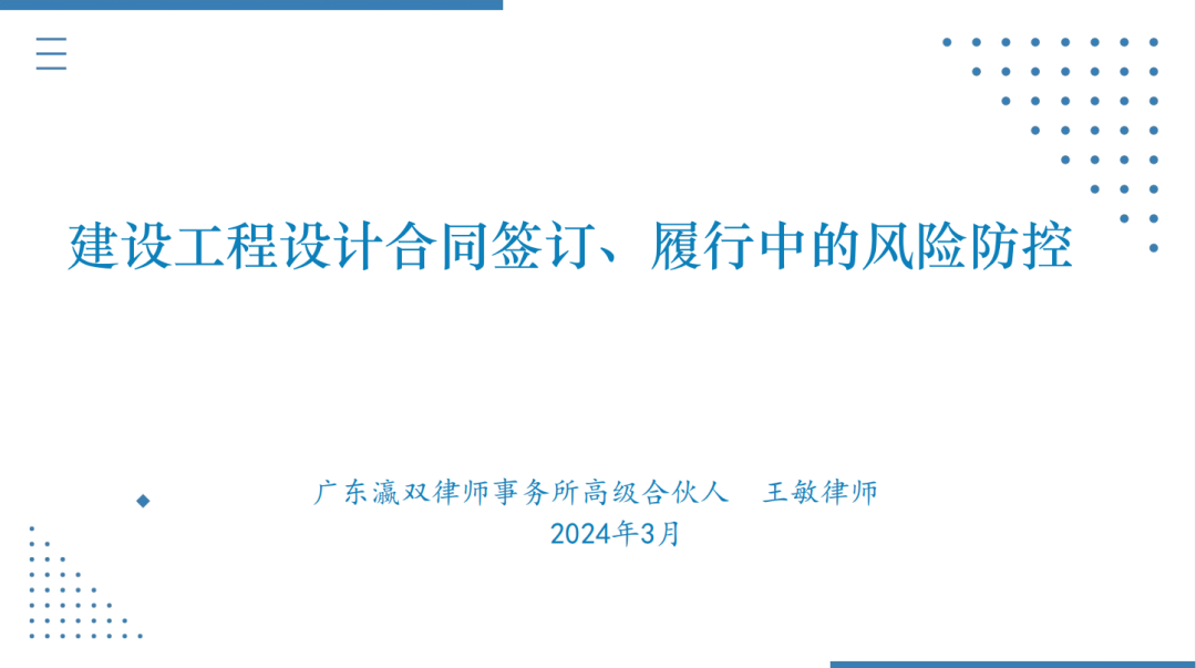 近年来,建筑工程领域的合同纠纷愈发频繁,为提高公司员工的风险防控意识,王敏律师通过6个案例帮助大家分析建设工程设计合同的签订与履行中存在问题以及争议焦点,同时,对公司如何完善合同条款和日常工作流程提出一些意见和建议。