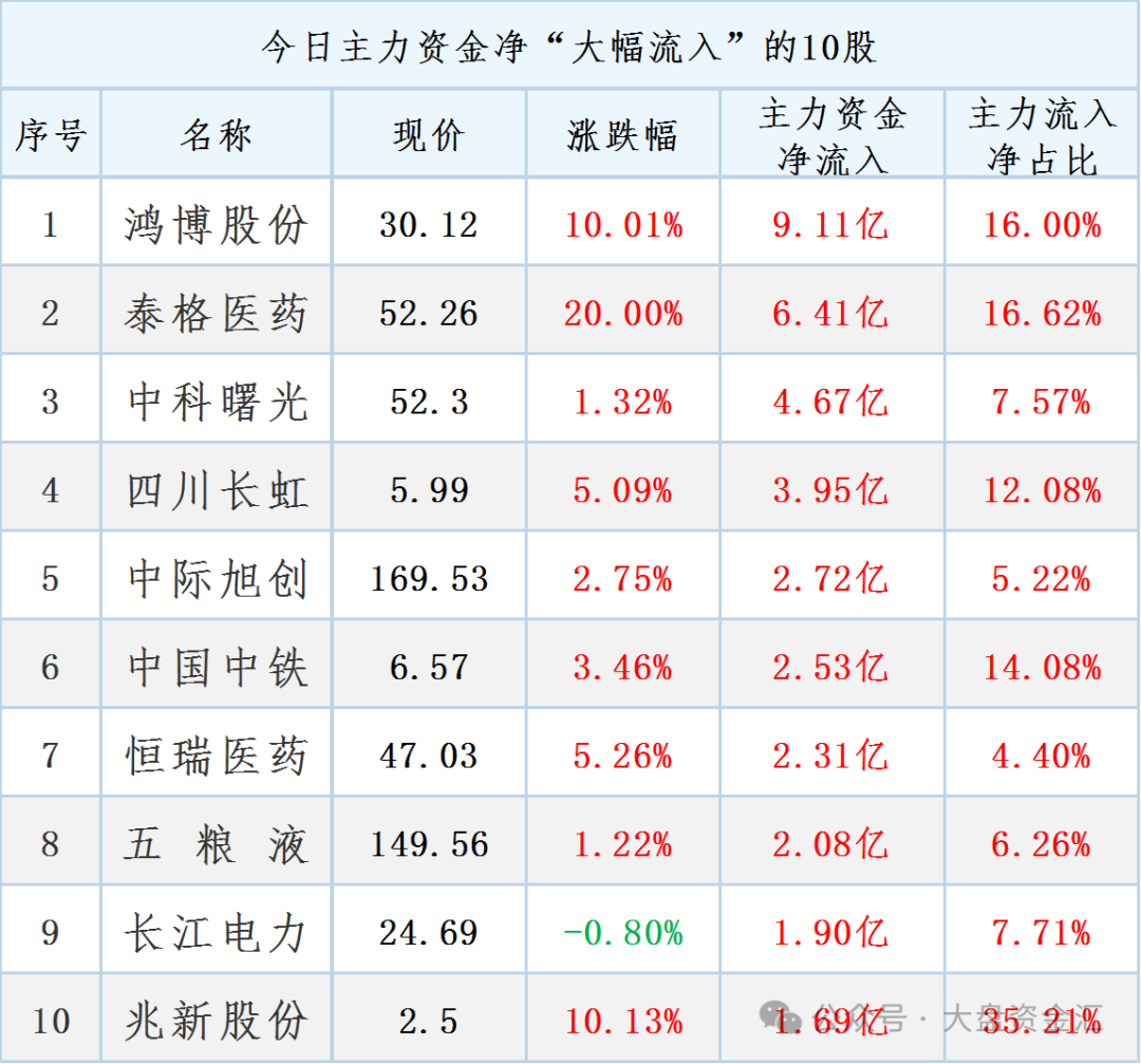 主力流入