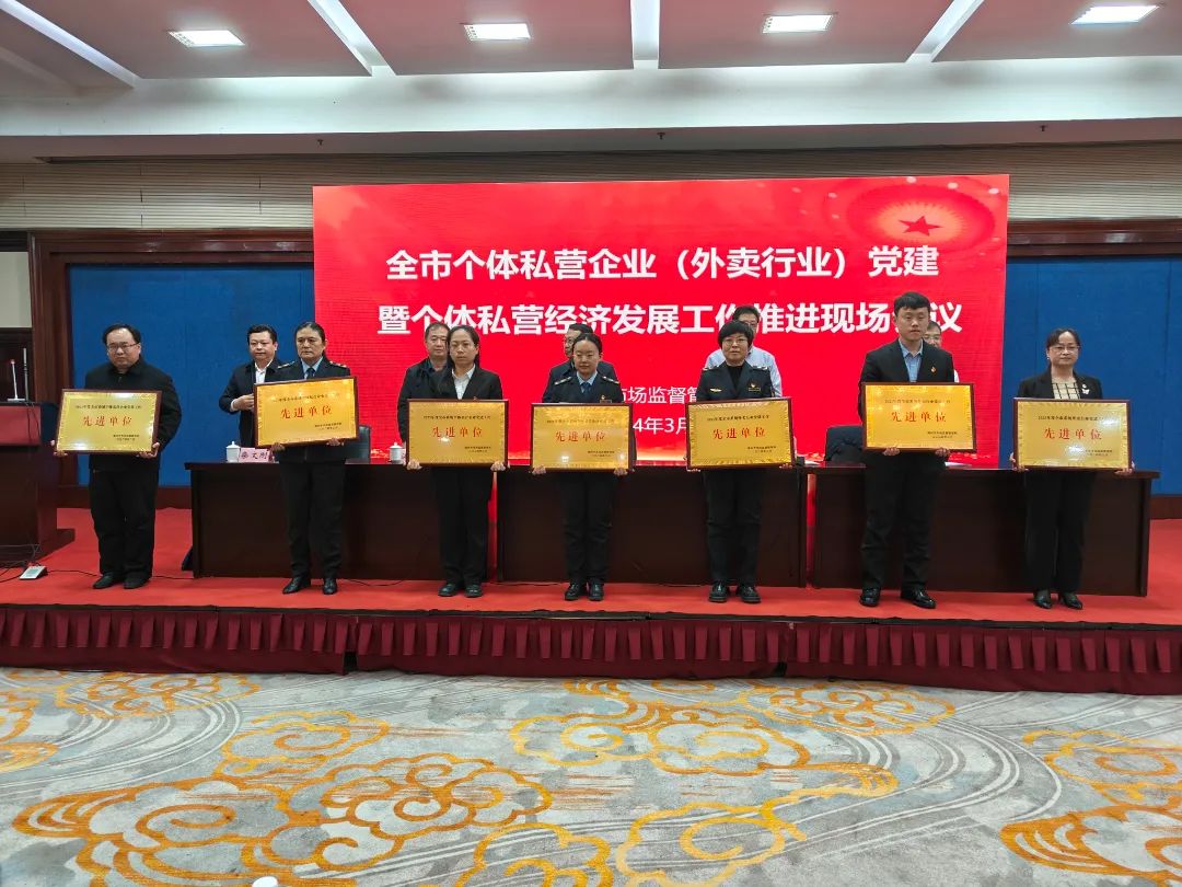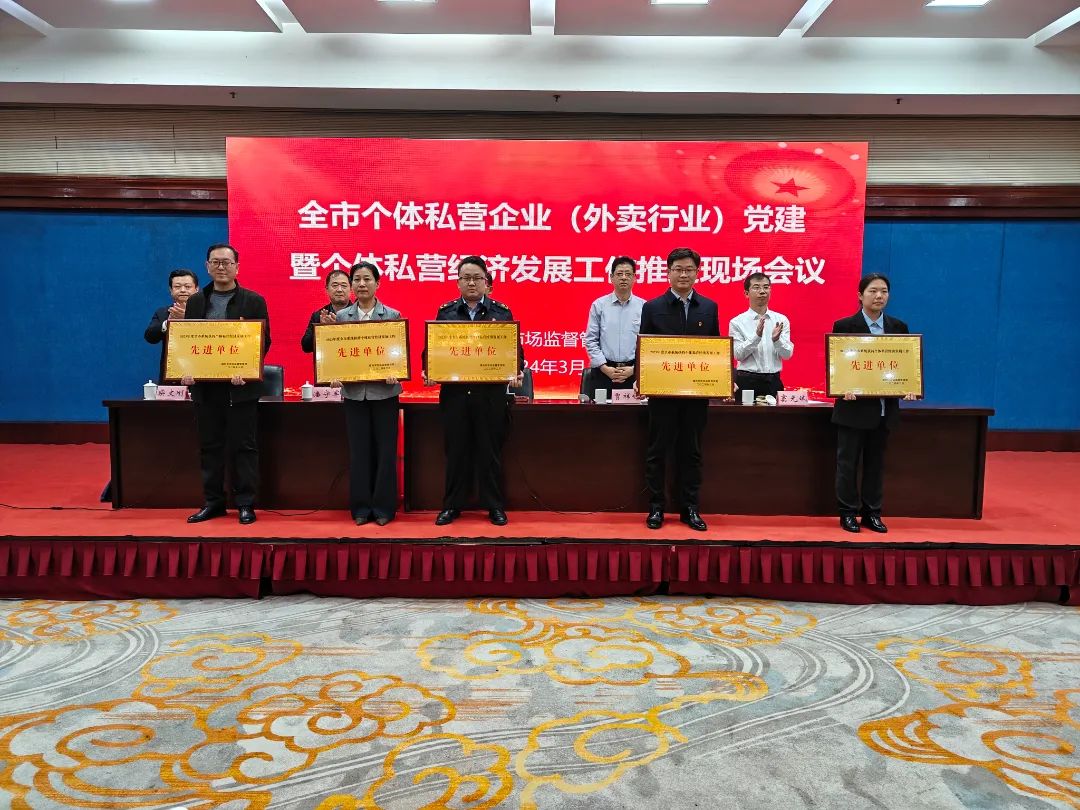 会上观看了德城区“小个专”党建工作宣传片并对全市个体私营企业(外卖行业)党建先进单位及个人、扶持个体私营经济发展先进单位及个人以及全省百强党建品牌单位进行表彰,山东省市场监管局个体私营经济发展促进处三级调研员贾祥峰同志及德州市市场监管局党组书记、局长毕志国同志发表重要讲话。德城区市场监管局荣获2023年度全市系统个体私营企业党建工作先进单位荣誉称号,局党组书记、局长孙祥忠同志作了题为《党建引领 赋能提升 助力个体私营企业高质量发展》的交流发言。