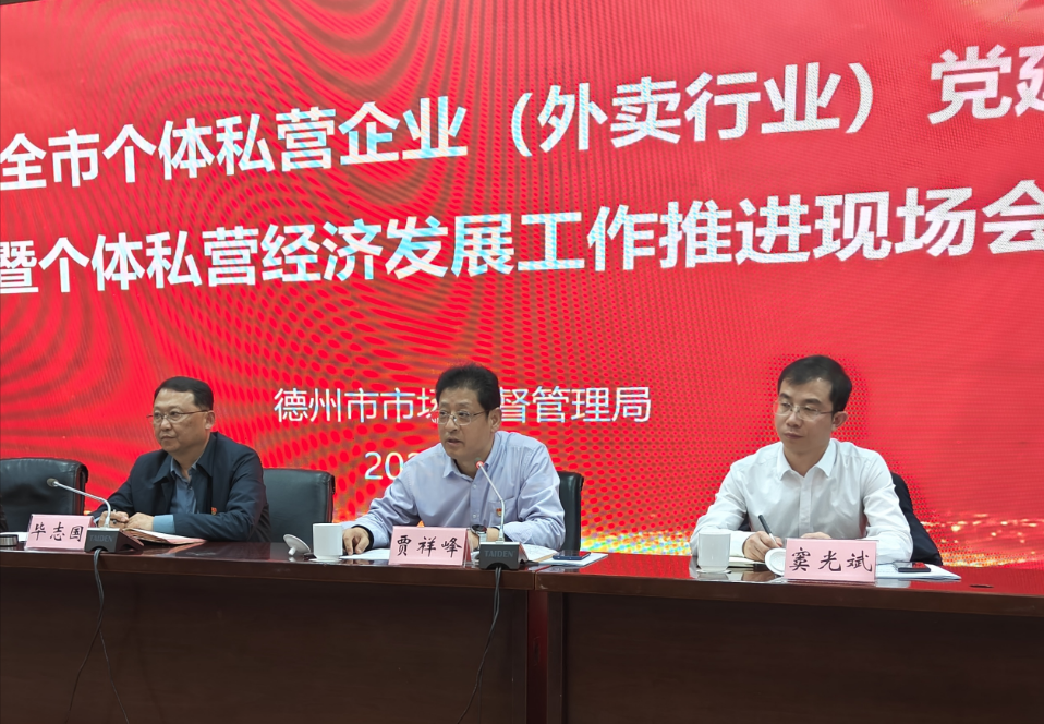 3月13日,德州市个体私营企业(外卖行业)党建暨个体私营经济发展工作推进现场会议在德城区召开。省市场监管局个体私营经济发展促进处三级调研员贾祥峰,市委组织部党员教育中心副主任、四级调研员潘守军,市市场监管局党组书记、局长毕志国,副区长、党组成员窦光斌出席会议;市局党组成员、副局长柴文刚出席并主持会议;区委副书记、区长张因忠出席会议并致辞;各县(市、区)局主要负责人及分管领导,相关企业党组织负责人等70余人参加会议。