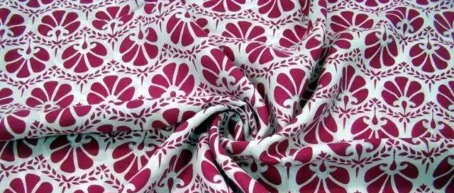 面料特点:富春纺绸面经纱显露多,呈清晰颗粒状。表面光滑平整,质地丰厚,手感柔软滑爽,色泽鲜艳、光泽柔和,耐洗、耐用、价廉,吸湿性能好、穿着舒适。但耐磨性差、易起毛、易折皱,且下水后缩水率较大,强力大大降低,因此要采用正确的洗涤方法。