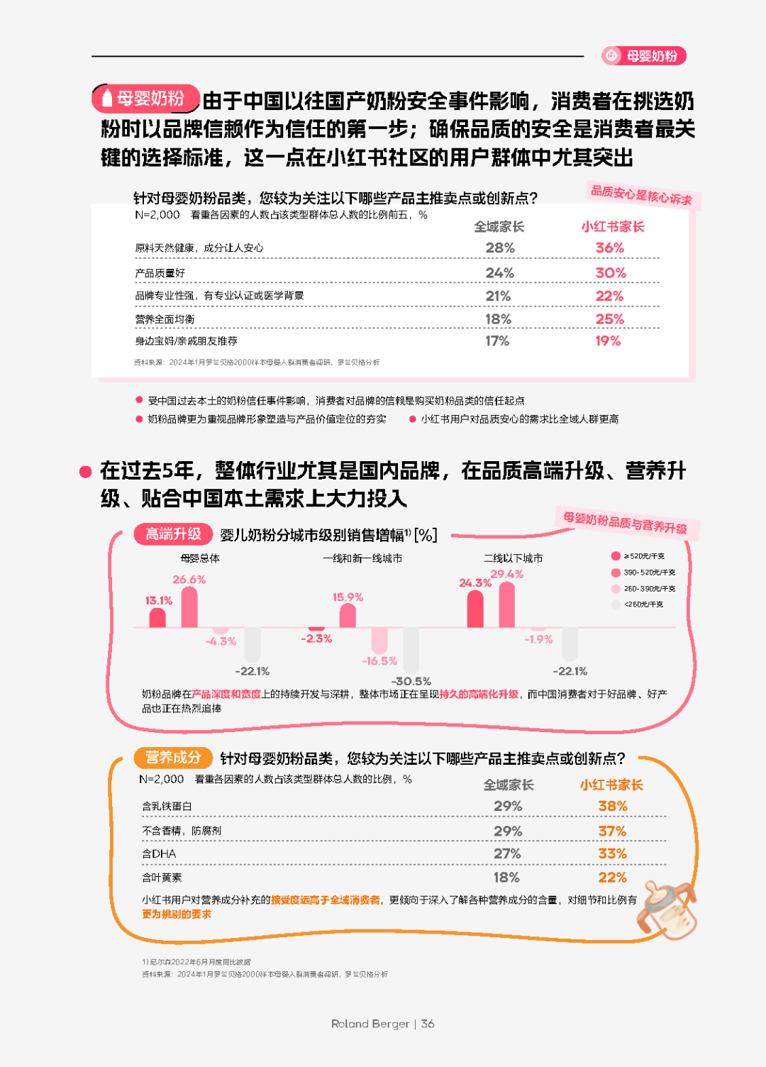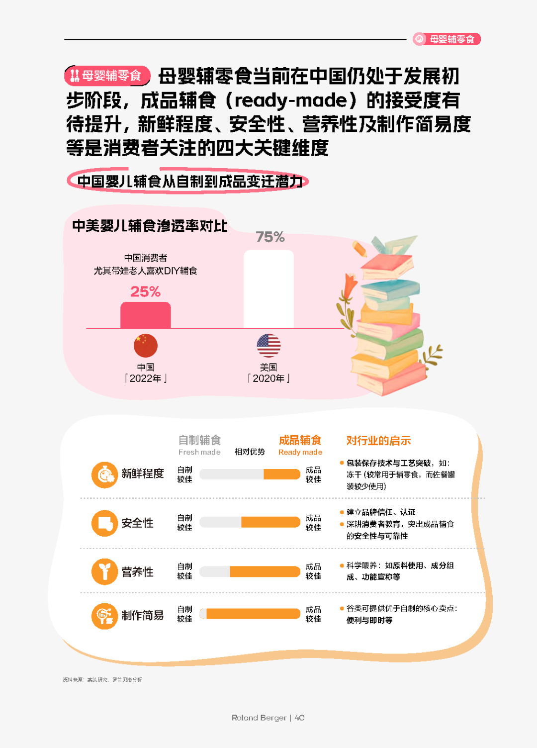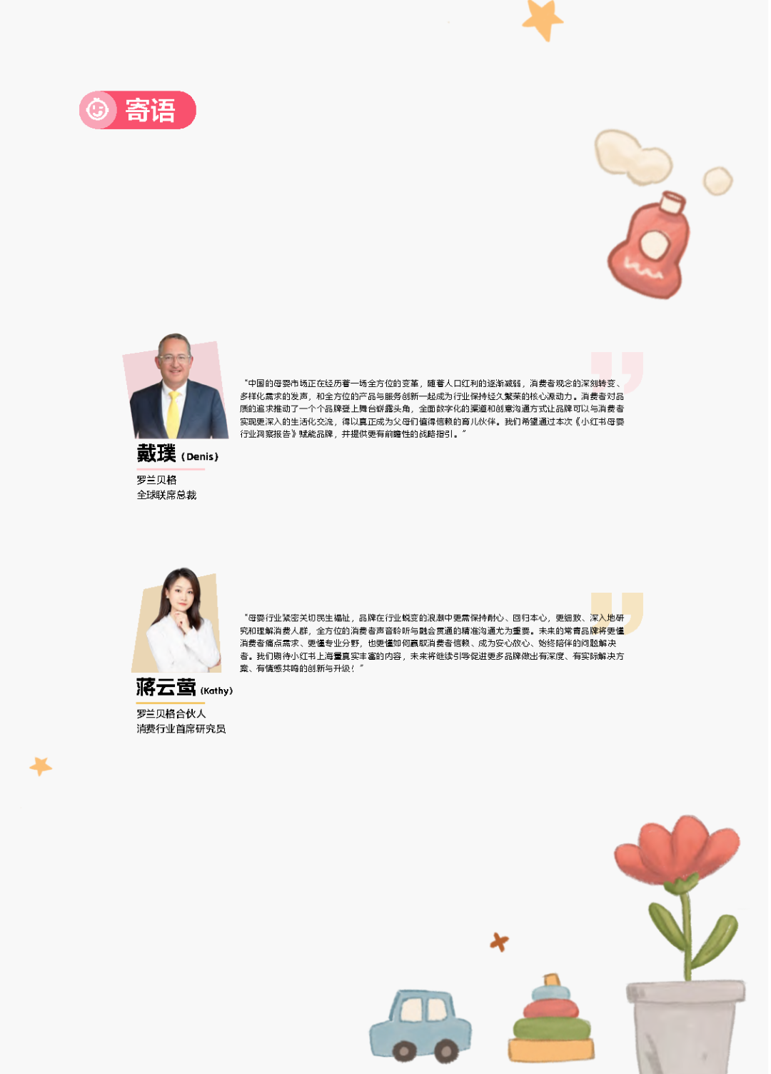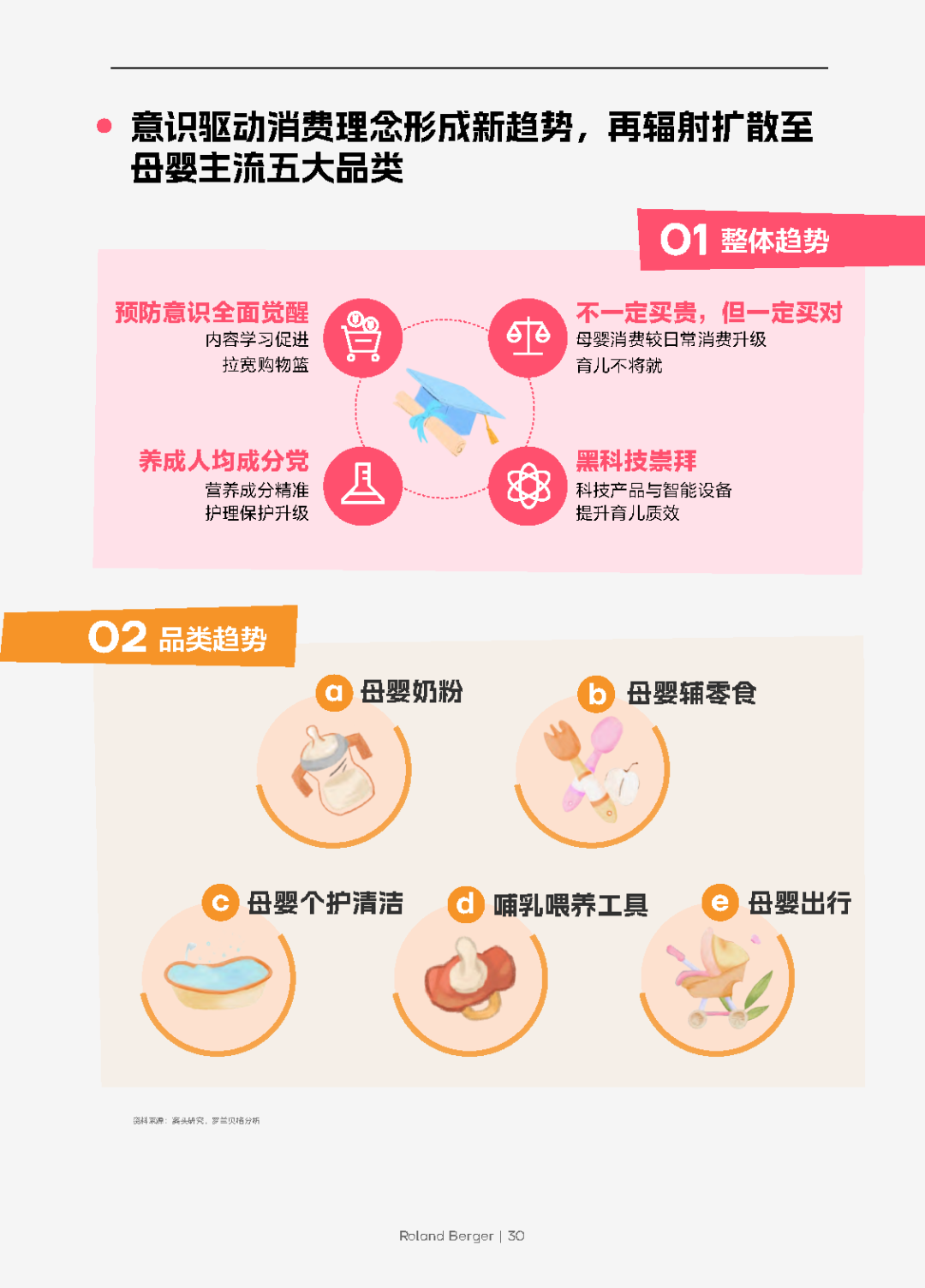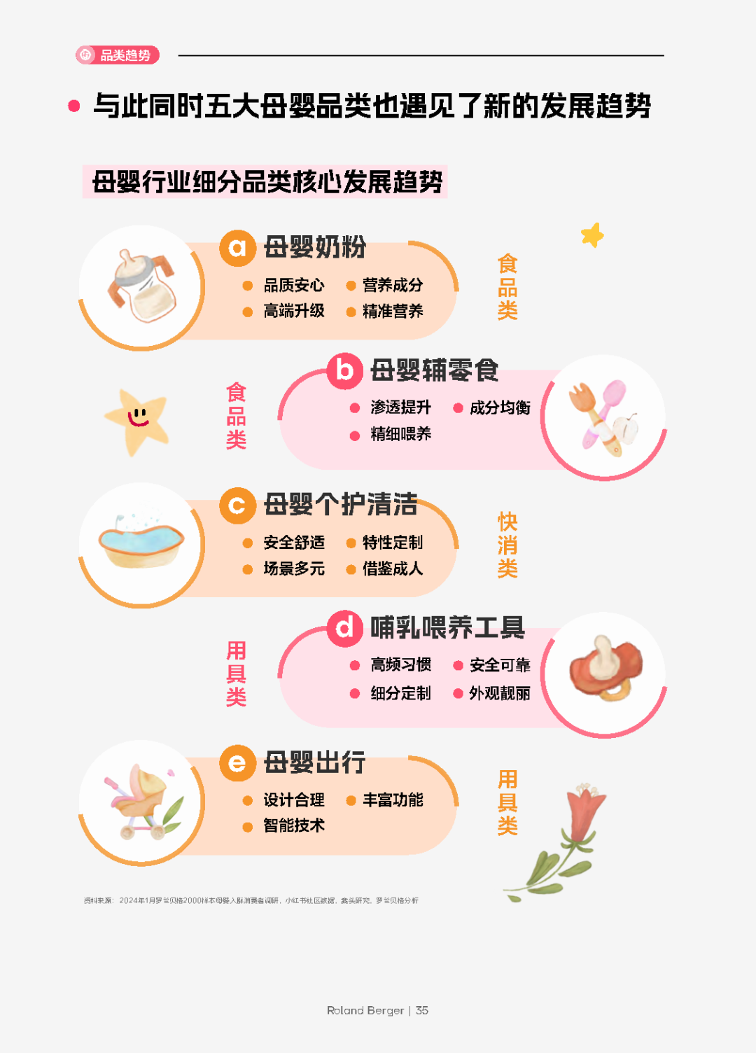 针对母婴奶粉、辅零食、个护清洁、哺乳喂养工具及母婴出行等核心品类,报告认为高端化、精细化、个性化和智能化将成为行业主流发展方向,品牌需紧跟消费者需求的变化,持续创新升级。