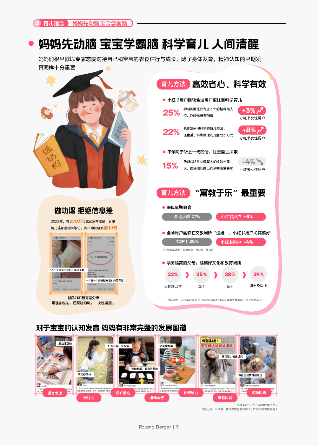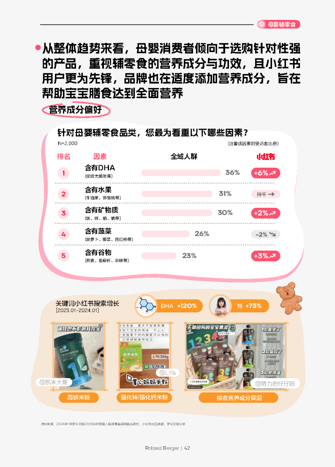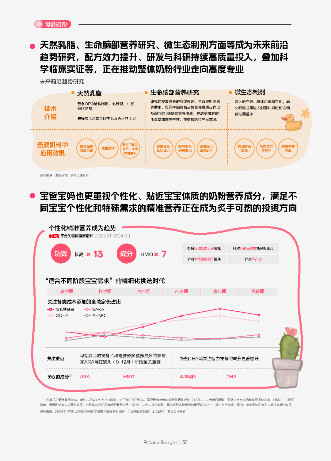 报告分析了母婴行业六大品类消费的四大主要趋势:预防意识全面提升,家长们通过自我学习和优质内容引导,不断提升育儿决策的质量;消费者追求性价比,不再盲目追求高价,而是选择适合的产品;成分党盛行,家长越来越关注产品成分和营养搭配,力求养好娃而非仅限于养娃;智能化产品受到追捧,黑科技融入育儿场景,助力提升育儿效果。