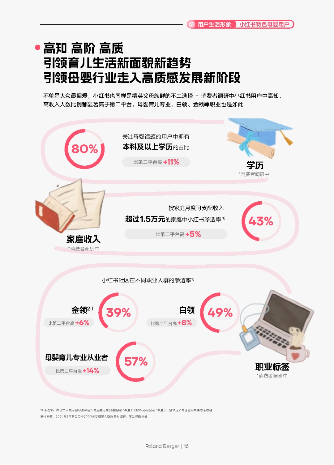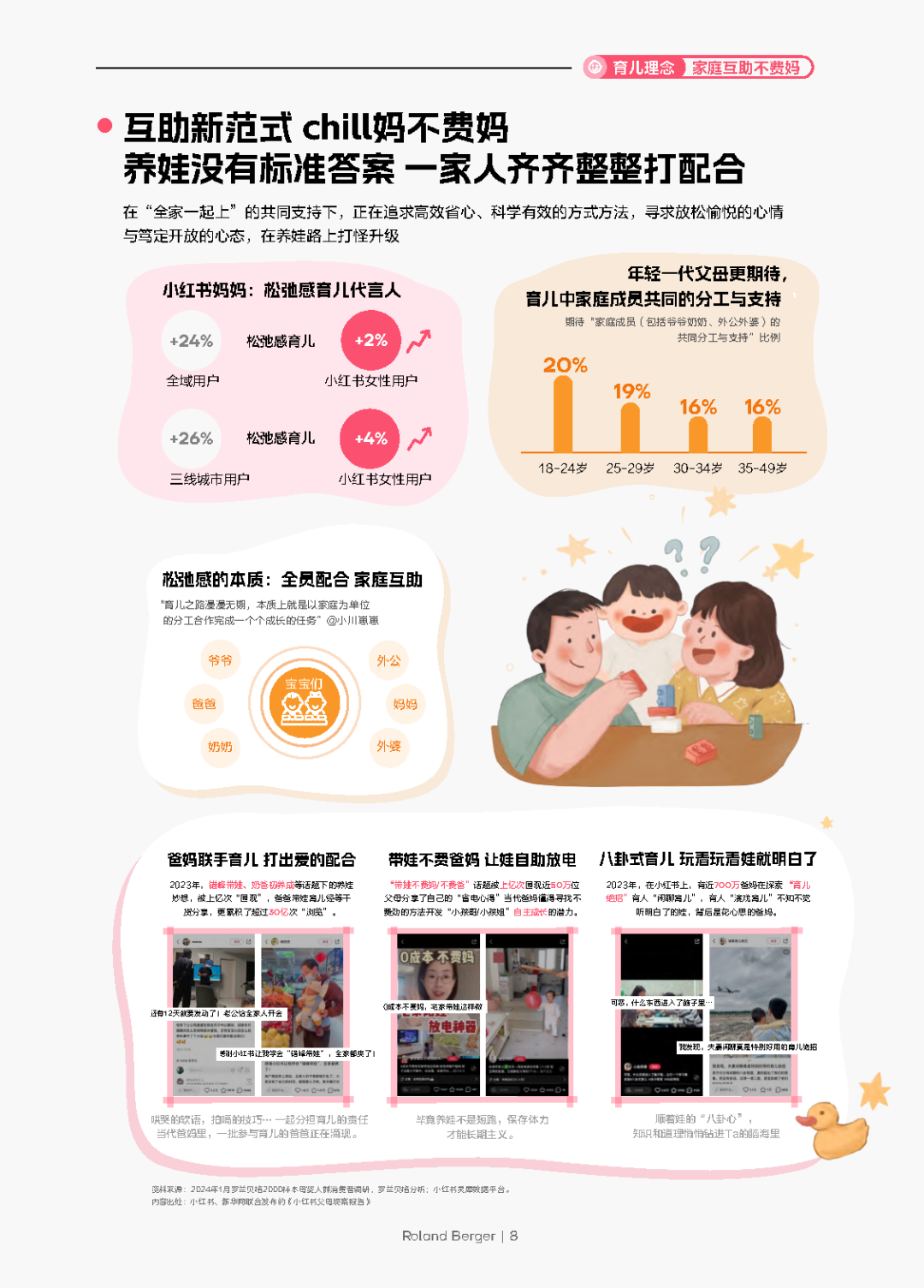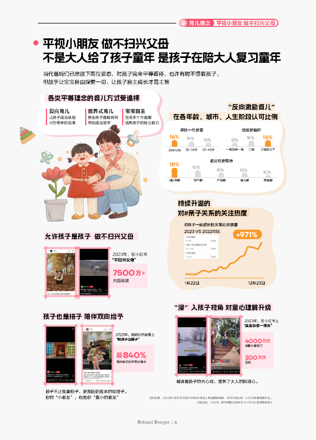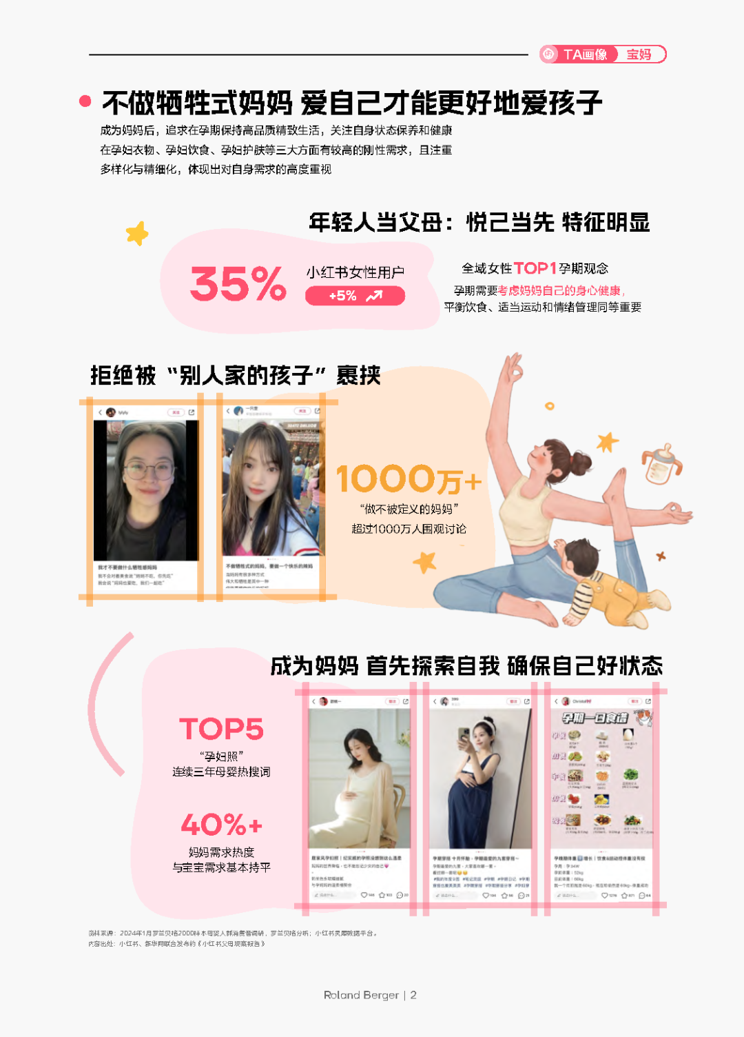 现代宝妈在孕期便追求高品质生活,对孕妇服饰、饮食、护肤等方面的要求日益增高,体现出个性化和精细化的趋势。宝爸的角色愈发凸显,他们深度参与到育儿过程中,愿意投资时间与金钱,关注宝宝全面发展,尤其在一线城市,爸爸们乐于陪伴、乐于分享,已成为育儿道路上不可或缺的力量。