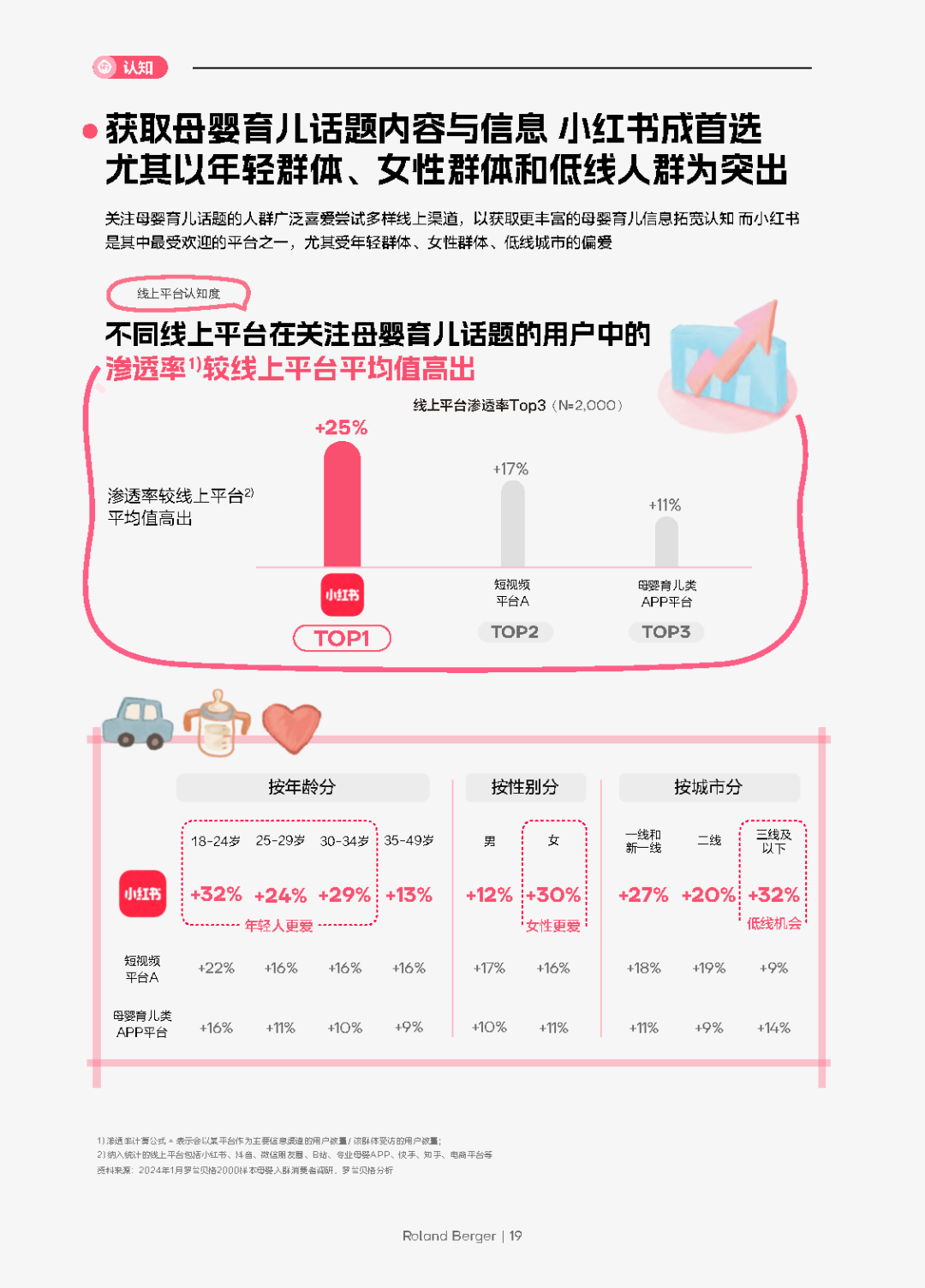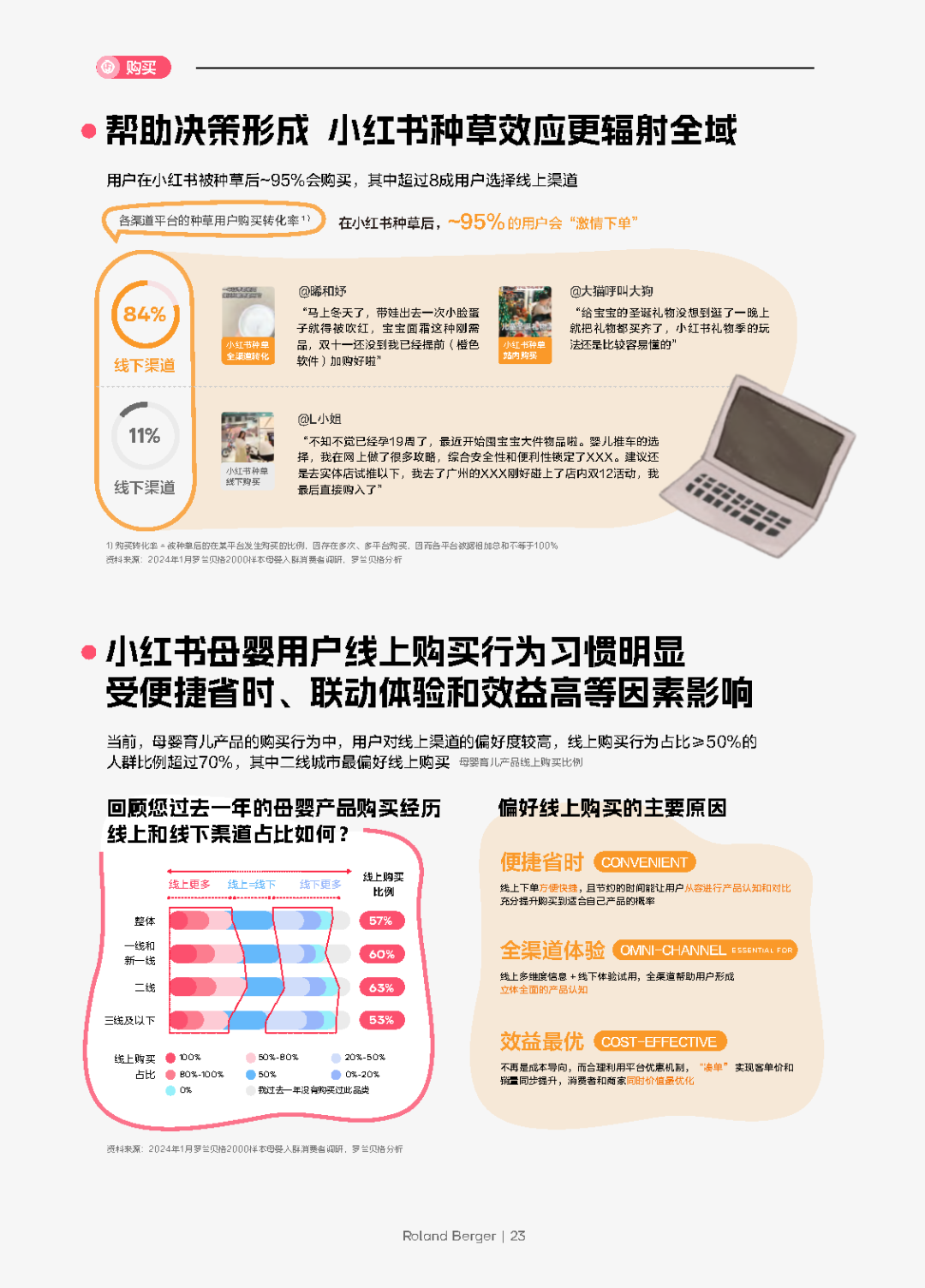 在数字化浪潮席卷之下,母婴育儿产品市场正在经历一场线上内容革命。报告指出,近九成的用户在小红书上看到相关内容七次以内即有可能被种草,并快速转化为购买行动。线上购物渠道格外受到欢迎,尤其是二线城市的消费者,线上购买行为占比超过一半以上。