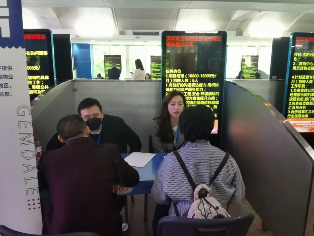 这是一场高质量现场招聘会,几乎集齐深圳市物业行业各大企业。前来应聘的人员的素质也都不错,公司通过现场沟通,收集许多目前在招岗位合适的人才信息。此次现场招聘会,从报名到现场参会,组织有序,执行高效,通过招聘会,企业增加展示机会,拓展了人员招聘渠道。同时给求职者获得工作岗位的机会。希望未来多组织类似的现场招聘会,我公司将会积极参与。