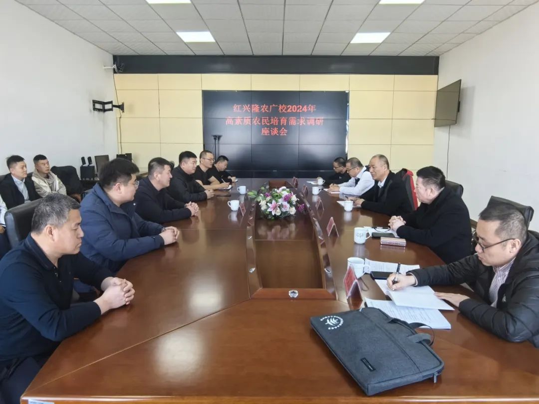 3月14日,红兴隆分公司农业发展部联合垦区农广校红兴隆分校到曙光农场有限公司开展高素质农民培育需求调研座谈,副总经理许景峰、农业发展部部长张锋及工作人员、学员代表参加座谈会。