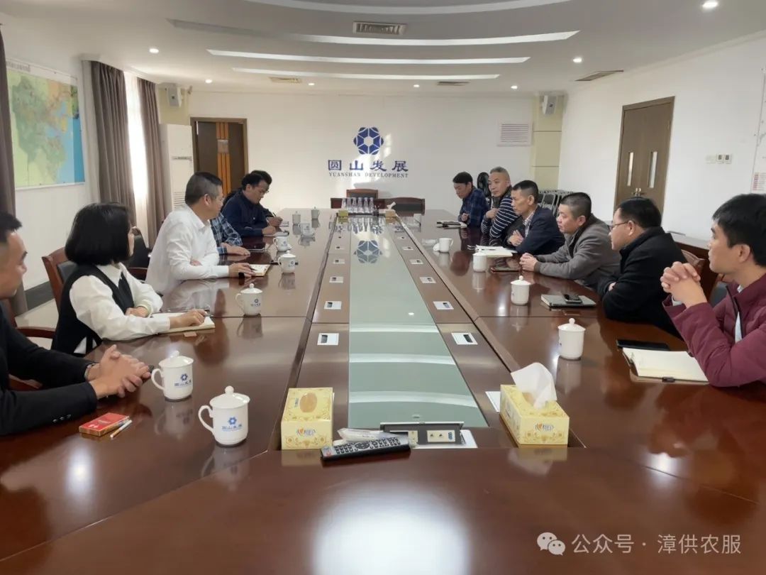 2024年3月12日,漳州市供销合作社党组书记、主任陈志,漳州供销集团有限公司董事长陈贻孝,漳州供销集团副总经理、漳州漳供现代农业服务有限公司总经理黄武真等一行到漳州圆山发展有限公司调研推进业务。圆山发展有限公司董事长郑枝东以及相关部门人员参与座谈。