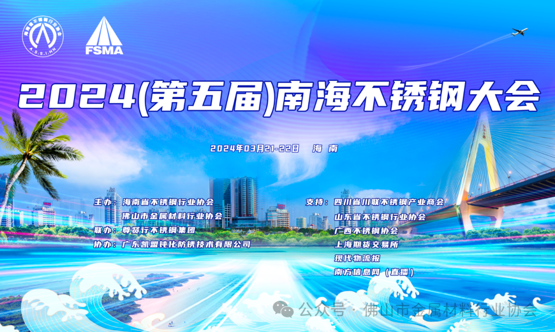 3月22日9:00-12:30召开2024(第五届)南海不锈钢大会暨佛山市金属材料行业协会三届四次会员大会。