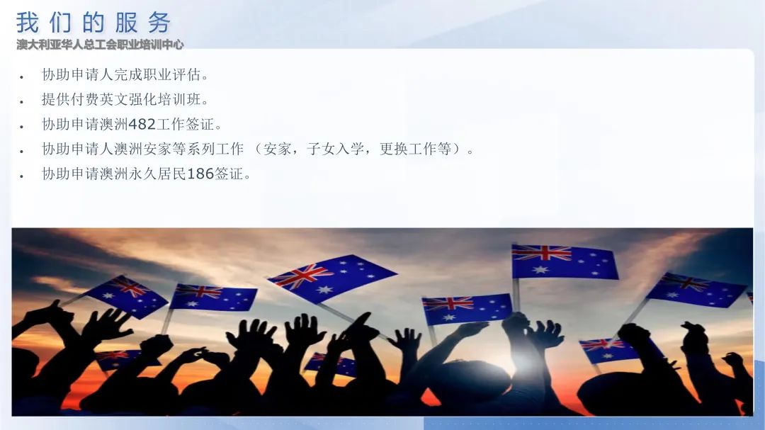 鉴于就业形势的内卷,澳大利亚华人总工会执委会同意澳大利亚华人总工会职业培训中心在国内开展劳工协议就业及移民项目的申请,并就有关细则简要发布如下。