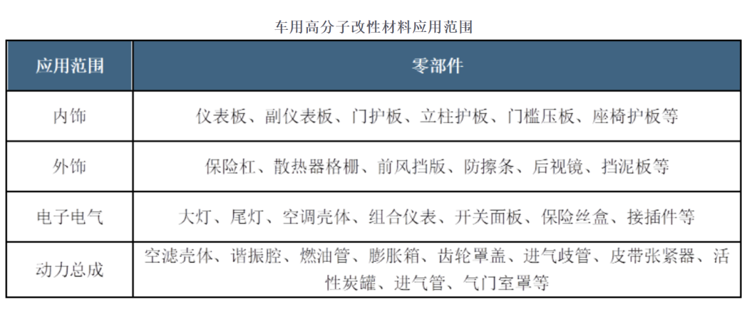 车用高分子改性材料应用范围