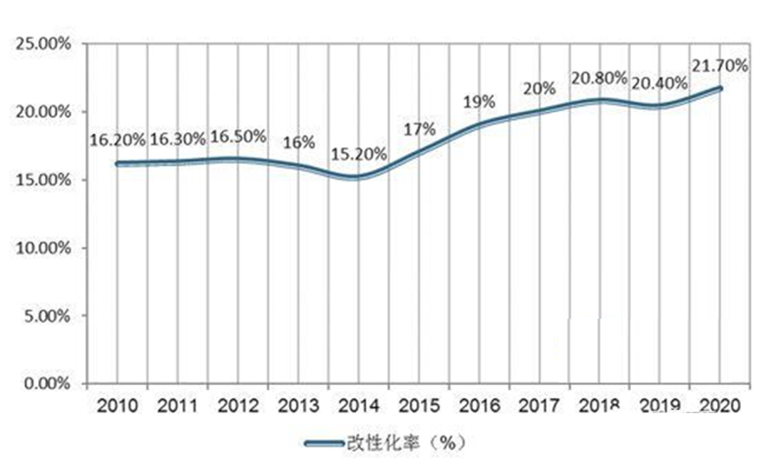 2010-2020年我国塑料改性化率