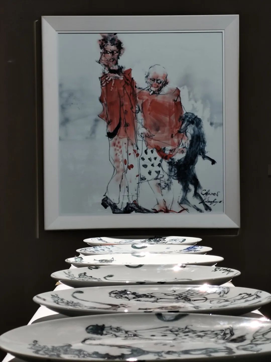 本次展出的作品共计60幅,其中瓷画46件、油画4幅、纸画10幅,所有作品全是新作,这也算是俞晓夫教授的一个立体综合的小型精品展览。