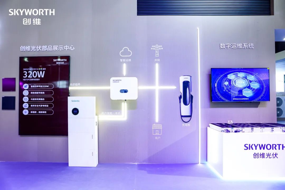 创维集团作为国内家电及消费电子龙头企业,携集团全品类产品重磅亮相AWE展会。创维光伏作为隶属于创维集团的新能源业务核心产业公司,以“光伏+普惠+数字科技”的创新商业模式,及定制化设计的创新光伏产品,吸引了现场众多家电经销商及观众的驻足咨询。