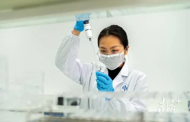 广清中大检测研究院实验室内,一名工作人员正在检测。