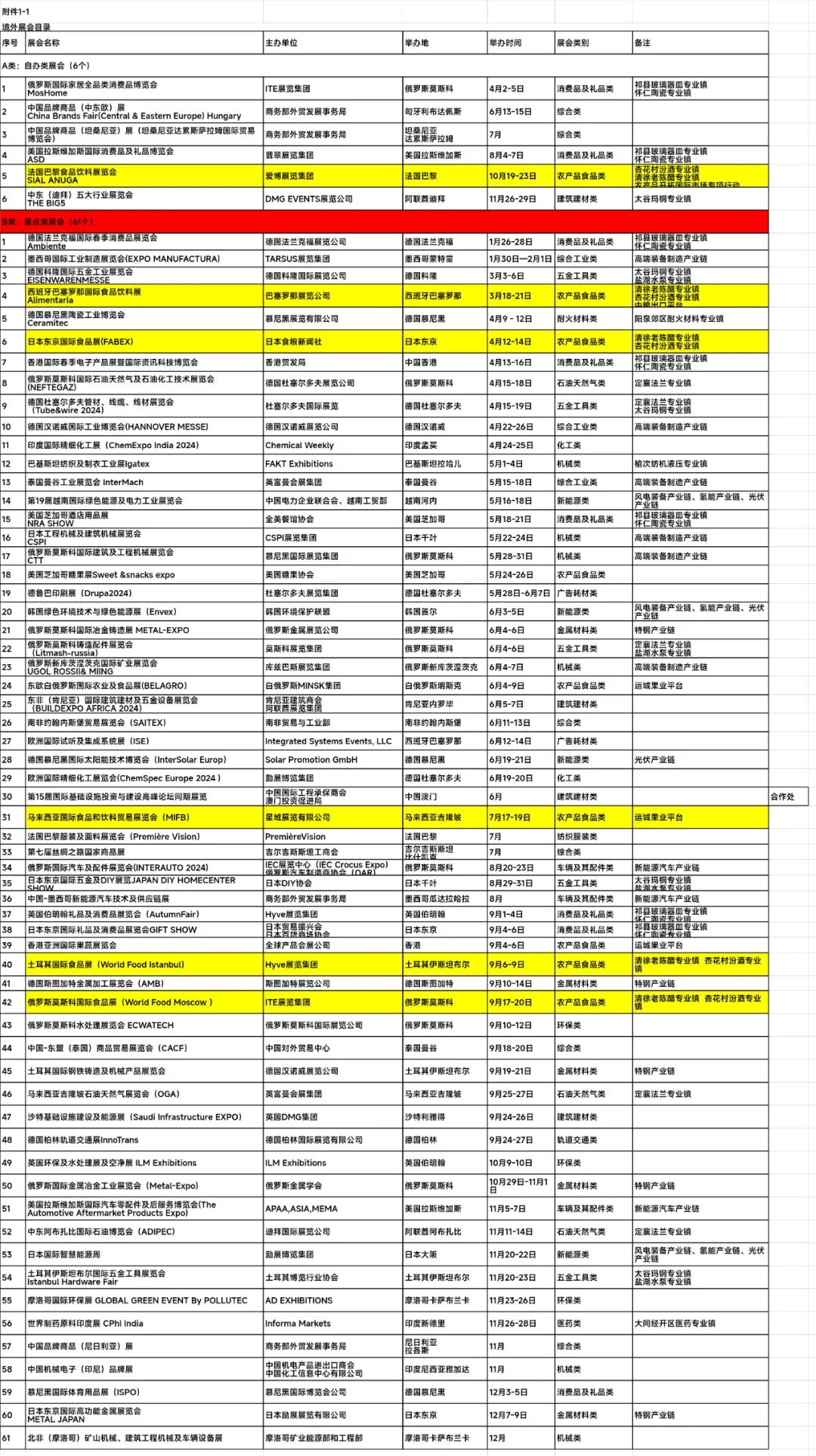 境外展会目录