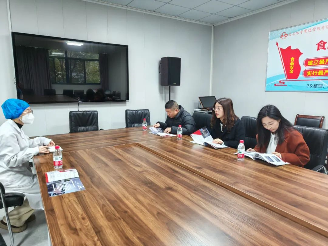 检查结束后,我们在配餐公司会议室里进行交流。蒋校及家委代表对配餐过程管理如:洗消区的干湿分离、分餐区的无菌管理等细节提出了更高的要求,配餐公司负责人表示会尽快进行整改,确保食品安全和学生配餐质量。