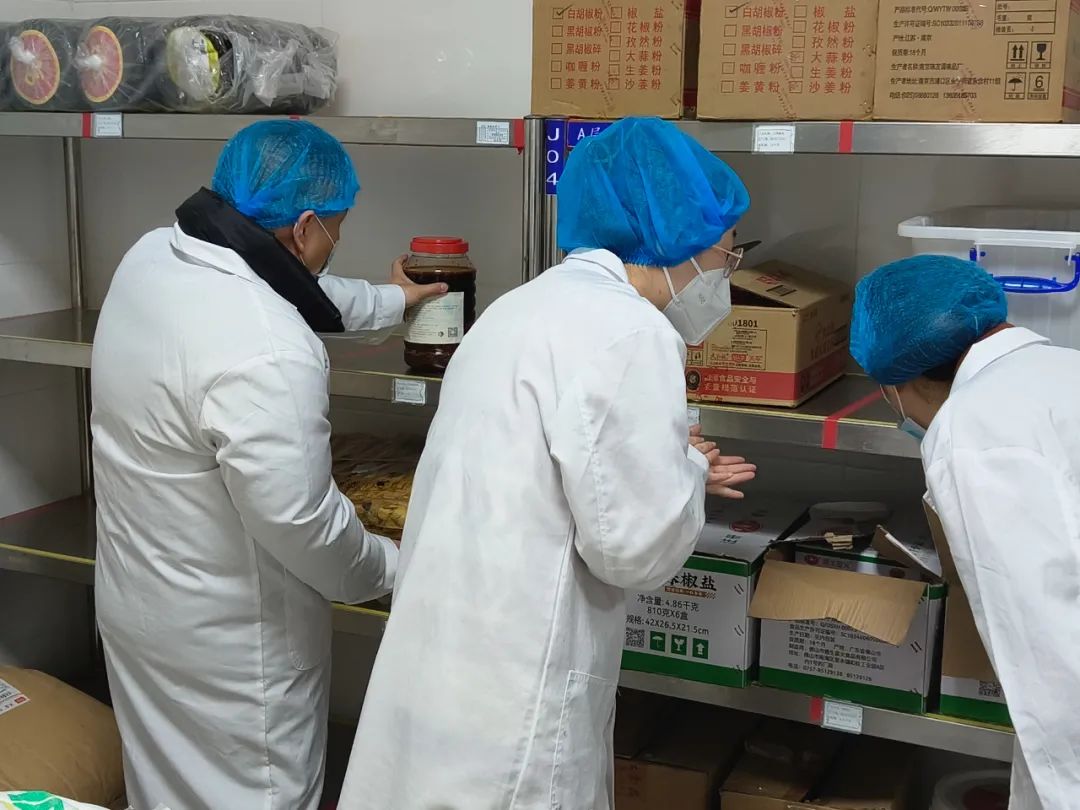 检查中,我们深入配餐公司的粗加工间、库房、热灶间、分餐间和洗消间等重要区域,对食品的贮存条件、加工制作使用的工具和餐具的清洁度、食品留样以及冷库使用管理情况进行了详细检查。对于从业人员的健康状况、公司各项资质证书的情况均进行了详细的检查,确保所有工作人员都符合卫生防控要求。