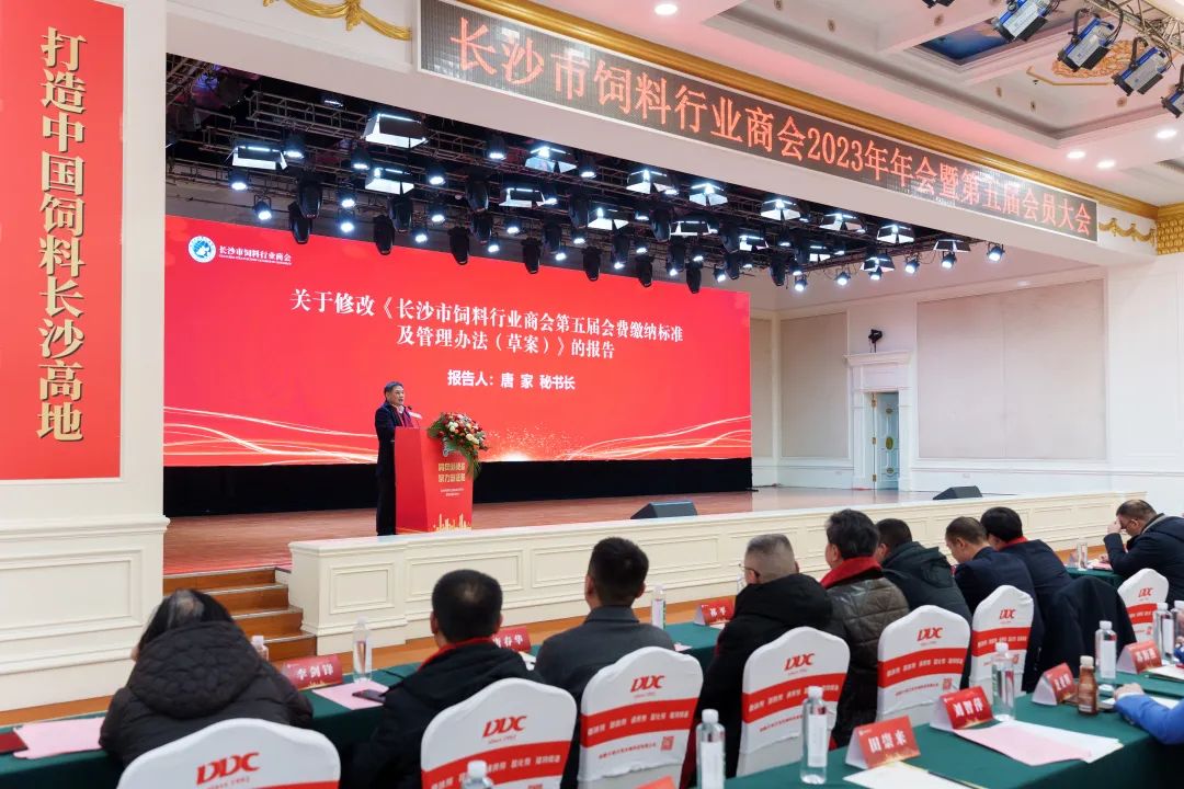 湖南农大追求饲料科技有限公司董事长、长沙市饲料行业商会秘书长唐家老师对长沙市饲料行业商会第四届理事会的财务工作报告做了具体阐述,具体介绍了第四届理事会具体费用的数据与去向,第四届理事会的财务工作报告获得了参会代表的一致通过。关于修改《长沙市饲料行业商会第五届会费缴纳标准及管理办法(草案)》的报告,也经过投票表决获得通过。大会还审议并表决通过《长沙市饲料行业商会章程(草案)》修改说明及《长沙市饲料行业商会第五届会员大会选举规程(草案)》,以上议程结束后,唐秘书长代表第四届理事会对行业领导、专家及所有会员单位五年来的关心支持表示衷心感谢,并对新一届理事会寄以美好的祝福!