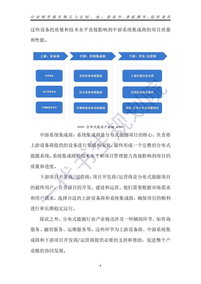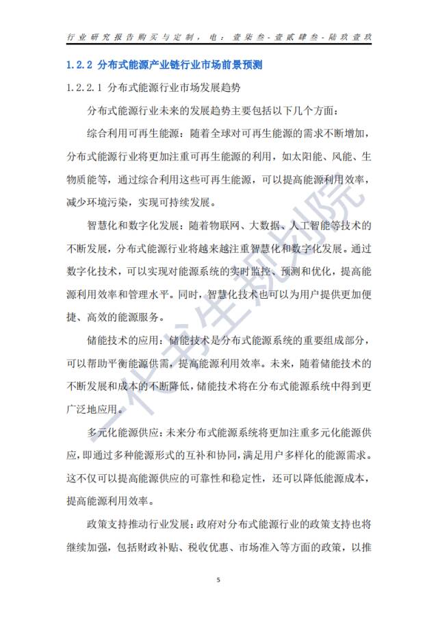 分布式能源(Distributed Energy Resorces)是指分布在用户端的能源综合利用系统,是一种可以满足多重目标的中、小型能量转换利用系统,它直接面向用户,按用户的需求就地生产并供应能源,具有多种功能,其追求终端能源利用效率的最大化,采用需求应对式设计和模块化组合配置,可以满足用户多种能源需求,对资源配置进行供需优化整合。分布式能源系统通常以天然气为主,辅以太阳能、风能等新能源,同时加入用户侧冷热电联产,通过多能互补的形式,满足用户侧的多级用能需求,这种能源系统具有环保、高效、使用安全、操作方便等特点。根据一代书生规划院对分布式能源行业的研究,我们认为分布式能源行业主要可以分为以下几个类别:第一,分布式光伏发电:这是分布式能源中最主要的细分领域之一,主要利用太阳能资源进行发电。随着光伏技术的不断进步和成本的不断降低,分布式光伏发电在近年来实现了快速增长。第二,分布式冷热电三联供:这种分布式能源系统可以同时提供电力、热力和冷气,具有高效、环保、安全等优点。分布式冷热电三联供系统通常使用天然气等清洁能源作为燃料,可以满足用户多种能源需求。第三,分布式生物质发电供热:利用生物质能进行发电和供热是另一种重要的分布式能源形式。生物质能是指利用自然界的植物、粪便以及城乡有机废物转化成的能源,具有可再生、环保等优点。第四,分散式风电:分散式风电是指将风力发电设备分散布置在用户需求现场或附近,直接为用户提供电力。这种分布式能源形式可以充分利用风能资源,减少能源传输损失,提高能源利用效率。第五,储能技术:储能技术是分布式能源系统的重要组成部分,可以帮助平衡能源供需,提高能源利用效率。常见的储能技术包括电池储能、压缩空气储能、超级电容储能等。第六,其他分布式发电技术:除了上述几种主要的分布式发电技术外,还有一些其他的技术,如燃料电池发电、潮汐能发电等,也在分布式能源领域中占有一定的市场份额。总的来说,分布式能源行业产业涵盖了多个细分行业,这些行业各具特点,但都致力于提高能源利用效率、减少环境污染、满足用户多元化的能源需求。我国分布式能源行业产业链上、中、下游已形成了一个完整、协同的生态体系。分布式能源产业链上游主要供应各种能源设备,如光伏设备、风力发电设备、生物质能设备等。中游主要为系统集成商,如光伏发电系统集成、风力发电系统集成及生物质能发电系统集成等。下游主要是产生的能源应用领域,包括工业区域的自发自用、民用区域的结余售电,以及商业区域和公共区域的分布式能源项目等。《2024年-2029年我国分布式能源产业市场发展研究分析报告》行业分析研究报告编制单位为苏州一代书生工程咨询有限公司。第一,综合利用可再生能源:随着全球对可再生能源的需求不断增加,分布式能源行业将更加注重可再生能源的利用,如太阳能、风能、生物质能等,通过综合利用这些可再生能源,可以提高能源利用效率,减少环境污染,实现可持续发展。第二,智慧化和数字化发展:随着物联网、大数据、人工智能等技术的不断发展,分布式能源行业将越来越注重智慧化和数字化发展。通过数字化技术,可以实现对能源系统的实时监控、预测和优化,提高能源利用效率和管理水平。同时,智慧化技术也可以为用户提供更加便捷、高效的能源服务。第三,储能技术的应用:储能技术是分布式能源系统的重要组成部分,可以帮助平衡能源供需,提高能源利用效率。未来,随着储能技术的不断发展和成本的不断降低,储能技术将在分布式能源系统中得到更广泛地应用。第四,多元化能源供应:未来分布式能源系统将更加注重多元化能源供应,即通过多种能源形式的互补和协同,满足用户多样化的能源需求。这不仅可以提高能源供应的可靠性和稳定性,还可以降低能源成本,提高能源利用效率。第五,政策支持推动行业发展:政府对分布式能源行业的政策支持也将继续加强,包括财政补贴、税收优惠、市场准入等方面的政策,以推动分布式能源行业的快速发展。总的来说,分布式能源行业未来的发展趋势将更加注重可再生能源的利用、智慧化和数字化发展、储能技术的应用、多元化能源供应以及政策支持等方面。这些趋势将共同推动分布式能源行业的快速发展,为实现可持续发展和应对全球能源危机做出重要贡献。
