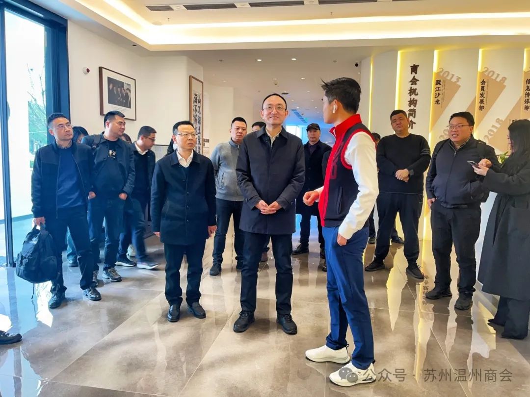苏州市温州商会会长苏琪皓、商会常务副会长,新生代联合会会长徐忠强、商会常务副会长王池铖、张加顺、商会副会长吴小红、林邦凯、温兴雷、陈德球。